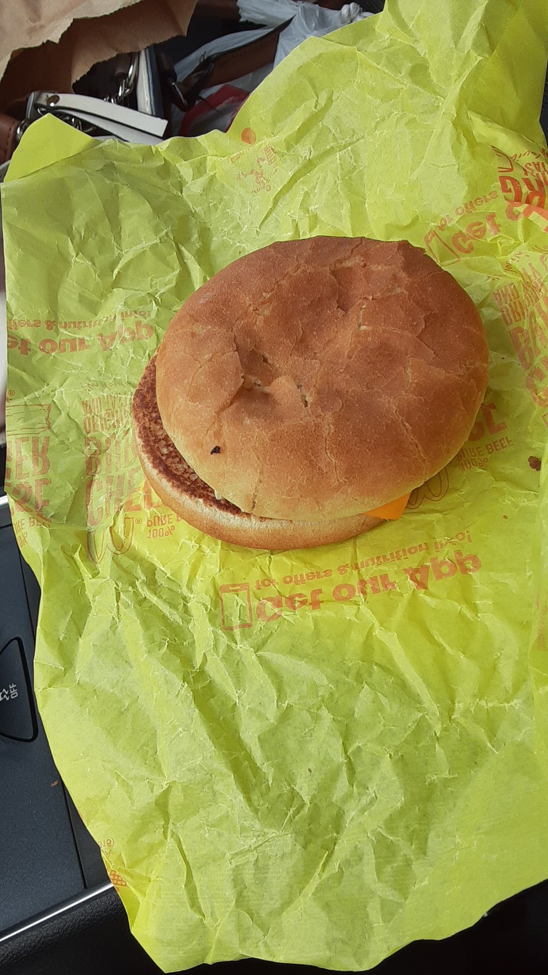 Pull up to get my food and no one there either. I order 2 cheeseburgers, fries, med drink, and a 6 piece nugget. No happy meal. Just nuggets. Girls runs over finally and hands me my stuff and said sorry about the wait and shuts the window!