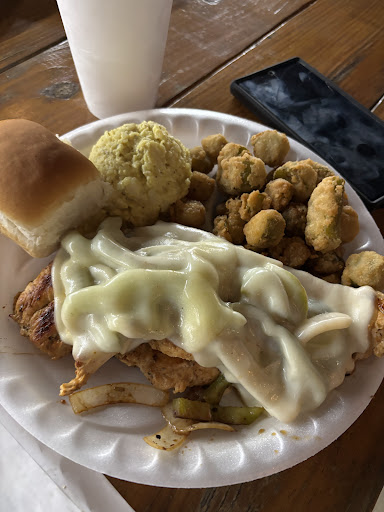Food was “okay” but a few things I didn't like was being charged $1 extra on each entree that had onion rings when the entrees said they came with two sides. The girl taking our order didn't tell us there was an extra charge for the onion rings, but I'm wondering why the charge in the first place when the onion rings were a normal side...and again, both plates came with two sides. ?? Also, something else we weren't told was having to pay a 4% fee to use a debit/credit card. We chose to go to this restaurant due to the good reviews and seemingly reasonable prices on the menu we read online, but I just don't like the extra charges on sides that appear to be included with the meal and not being told beforehand about it, as well as the charge we would have due to using a debit card. They need to be forthcoming with these things before paying. I shouldn't have to see it after the fact by looking at the receipt. We let it go, just not sure if we will be going back since we can eat many other places for that amount of money. The whole point of going there was trying to save some money and the food was...