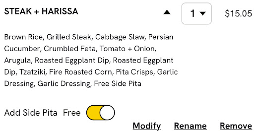 Read moreSo, technically I guess the food would be okay-ish if it had been right. My husband and son both got the Steak and Feta Pita sandwiches exactly the way they came and the pita was warm but everything else was ice cold. Also, half of the toppings were missing (according to the sign at the restaurant and the menu online). My daughter and I each got Greek Chicken Pita sandwiches exactly the way they came and while ours had all of the toppings, not even the pita was warm on our sandwiches. We didn't discover any of this until we got home. Once the sandwiches were warmed up, they tasted okay, but full disclosure: we all had stomach issues later, so proceed with caution. Additionally, they seemed to have a good amount of staff but while a few employees made eye contact with us over and over while we stood there for quite a while, no one ever greeted us or said anything about getting to us until the person finally finished the order before ours and asked to take our order. I understand they were busy but I've worked retail for many years and a little "I'll be right with you!" goes a long way when people are waiting and don't want to feel ignored. To make matters worse, it was confusing as to which side you were supposed to order from and it was extremely loud in there. Just chaotic and not a place I ever want to voluntarily return to. All in all it was a very underwhelming experience for almost $75 in...