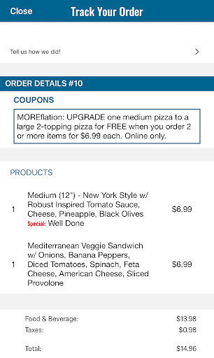 Read moreI wish I would have taken a picture! I placed an online order for carry out for two 8 piece chicken, a large pepperoni, and a medium pizza to include chicken, spinach, banana peppers, and bell peppers. Once I arrived at the store I greeted the employees and asked for my order. I was directed to the monitor stating “is your name on the board” it was not there. A different employee asked me my name then presented me with my order. I left to store and went home. Once home I noticed that my medium pizza did not have chicken so I called the store. The first person I spoke with asked me about my order and began the process of comping for with a pizza at a later date since I explained the inconvenience of returning to the store the same night due to work. A second person came to the phone and told me he specifically remember making my pizza and knows he put chicken on my pizza. Confused and insulted I asked “you’re making me return to the store to show you my pizza to prove that there is no chicken” the employee stated “yes.” Once I arrived at the store with my chicken-less pizza (very angry, hungry, insulted, and confused) the employee looked at my pizza and stated “I guess there’s no chicken on it” as if the fact of me actually driving there to prove a lie never crossed his mind. There was no apology for my inconvenience just remarks stating that customers lie all of the time to get free pizzas. Needless to say I will follow with a district manager and corporate. I’m POSITIVE this is not Dominos policy to treat all customer as dishonest thieves to get...