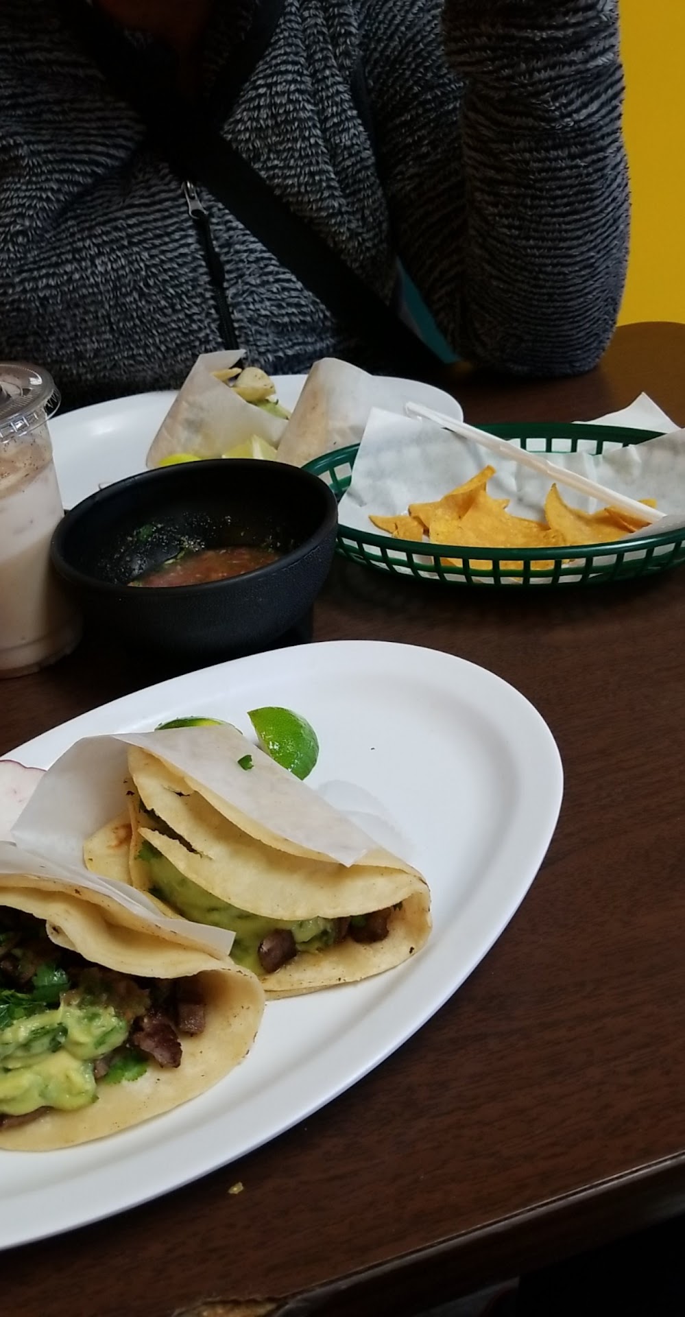 My husband got a chicken, steak, and al pastor taco. He loved the chop of the meats - they were finely diced. The toppings were abundant, and the tortillas were very clearly fresh and made in-house. They even had guacamole included! Deliciosa!