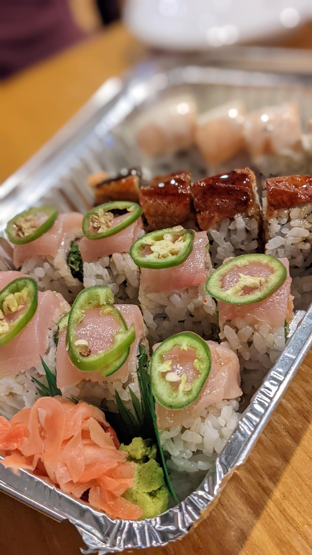 Read moreSushi is an acquired taste and only over a period of time do you,.. first off,.. learn the many ways ppl eat it,.. and secondly,.. you learn what it is you like and don't like,. There are a number of ways to eat sushi and if you were to ask a dozen people, "How do you eat sushi?" They would all give you a different answer,..my thoughts,.. well, you can do the Cookie Monster thing and just gobble it on down or... take a small taste of the wasabi to clean the palate of the tongue and open up the sinus. This will bring out the fullness of the many flavors wrap'd within the sushi,..Next,.. ginger or no,.. Really the ginger is supposed to help the raw fishes,..some fishes are lite with very little texture, the ginger is there to help to give the fish some texture so it doesn't seem that you're chewing air,..O.o,,..Really though, a better use for ginger is to eat it with sashimi,.. You may have a certain type of fish or seafood you prefer on your sush,..at this point, it's chow time,..no matter how you ritualize your sushi,.. along with a number of vegetables/condiments,.. perhaps you prefer a certain style/type of sushi, a specialty sushi roll or custom built,.. I have not yet been disappointed from any of the meals I've ordered from this restaurant,.. you won't be disappointed from...