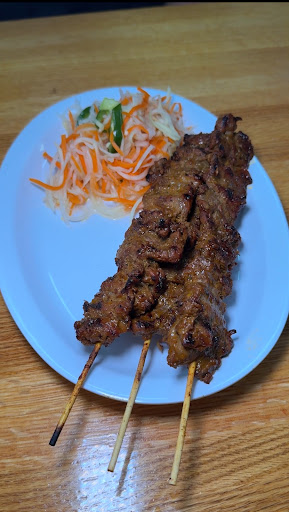 Beef sticks: Khmer marinated beef skewers with sweet, savory, and umami flavors. Served with a perfectly paired pickled carrot, daikon, ginger, and pepper slaw on the side. 10/10 MUST TRY!