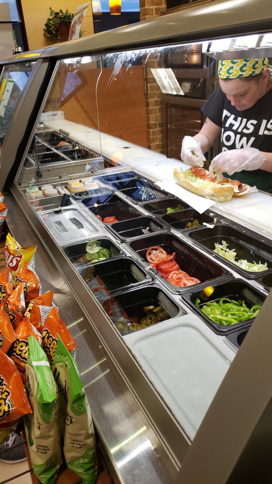 2]. This store is always clean out front, bathroom, sneeze glass; the chips stocked, soda area cleared of all the sticky/stocked. The smell is awesome. As for staff, most are great but you'll always have that one. Unfortunately they have to deal with some 'princesses' too. If you're not happy with how much vegs', tell them instead of complaining later. I always ask for more of some veggie... never been denied. I'm sure this goes for everything else but may cost extra. I eat here when I can &...