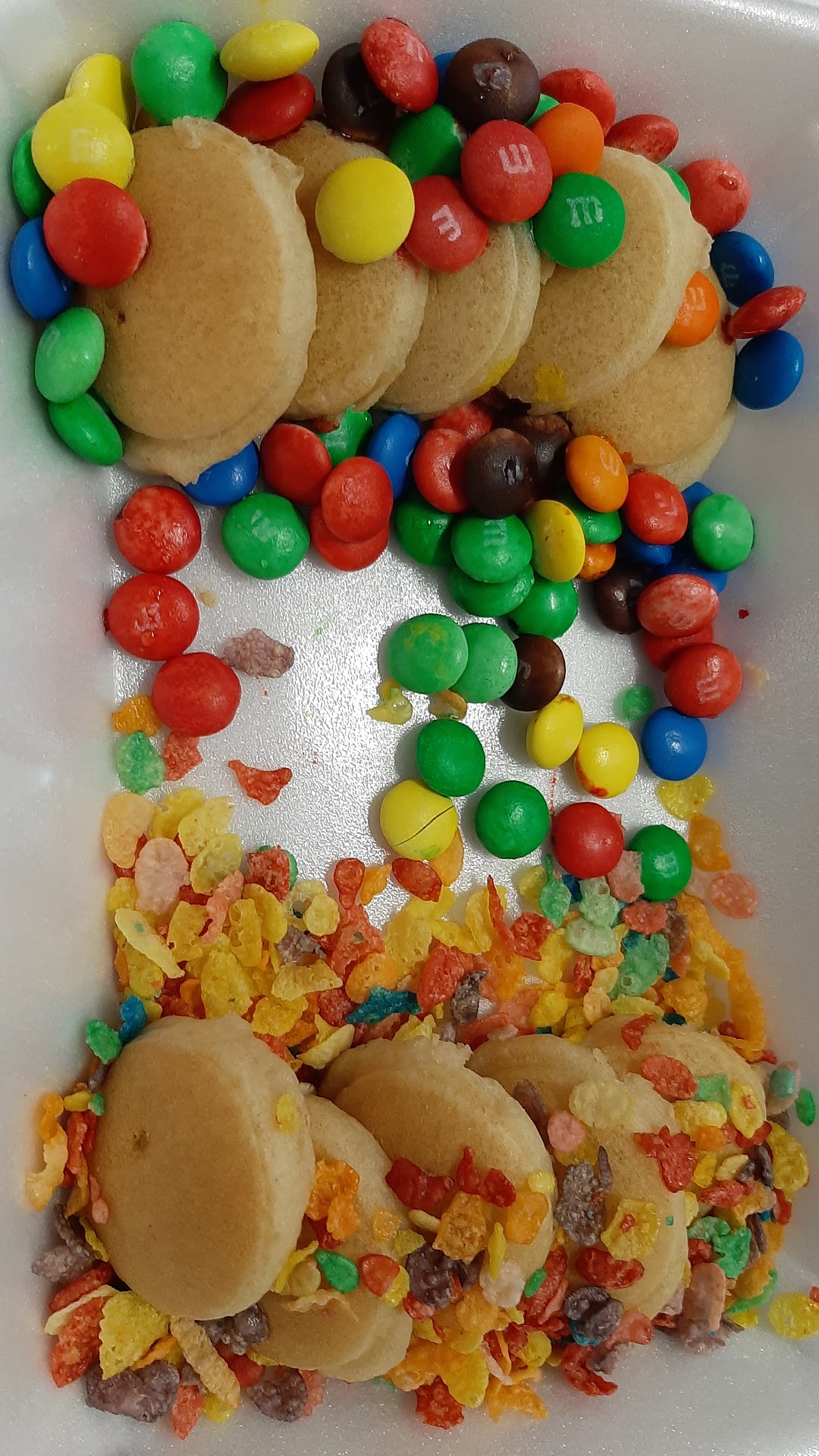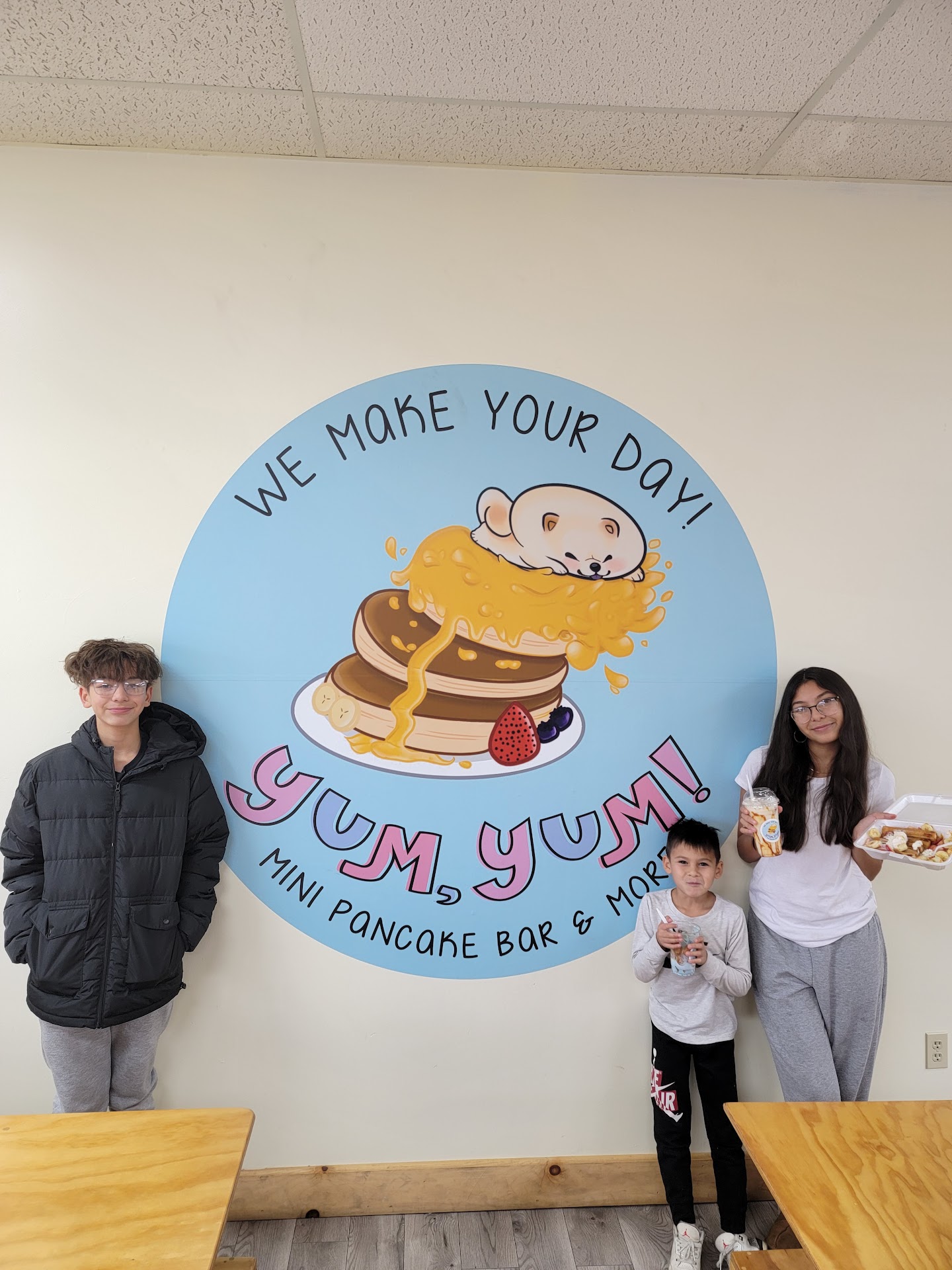 Second trip my boyfriend wanted a blueberry/strawberry smoothie. That couldn't be done without charging an extra $1. Can't see why the amount of each fruit couldn't be cut in half but whatever, he got a blueberry smoothie which was reported to taste fresh and light. He enjoyed it. I ordered the 15 mini pancake plate with bananas, peanut butter and marshmallows. Marshmallows were put on top of the pancakes and under the bananas so they were a bit melty and delicious. The bananas were sliced perfectly and the pancakes, while mini, were still fluffy.