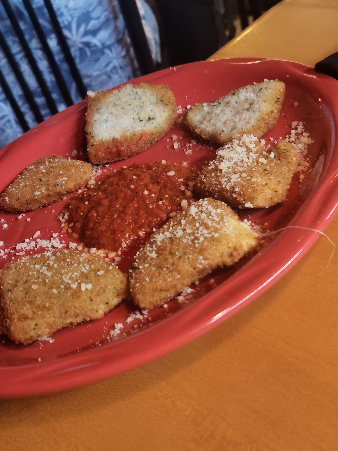 What a bummer. 1st our waitress was nowhere to be found for 15 mins after we were sat, with the booth next to us vocally complaining about the same thing. After finally taking our order it must've been another 10 minutes at least before our soup and salad made its way out. Waitresses words, "I was waiting on clean spoons" and then proceeded to bring my daughter a flimsy plastic to go spoon to eat her French onion soup rather than a clean one she just told us she ( and us) had been waiting on. An exercise in futility against the glorious layer of cheese that adorns French onion... We ordered the mozzarella sensations and fried mushrooms for appetizers, while the mushrooms came out fine, the mozzarella sensations came out with half of them still ice cold inside and with fully raw spots, of course flipped over so we didn't see them until we bit into one. When I mentioned it to my waitress, she made a comment about that "not being right" and snatched the plate up and took off without asking me or telling me what was to happen with them. Then a different waitress comes out mid meal, a solid 15 minutes later to bring us them, that had been cooked a 2nd time ..not remade. Again...i wasn't given an option, and since we were already done with apps and eating our entrees i politely declined them. Our entrees were the chicken piccatta. The chicken was good, a very small portion of rice on the plate , rather than the chicken being served "over rice" as described on the menu and the rice being overcooked to bloated mush. The sauce saved that one tbh....the chicken was cooked really well, not dry, not over Seared, really really good actually. The full rack of ribs were so mushy it was far for beyond "fall off the bone" and 1/3 of my full slab was just blobs of soggy meat. Sad.