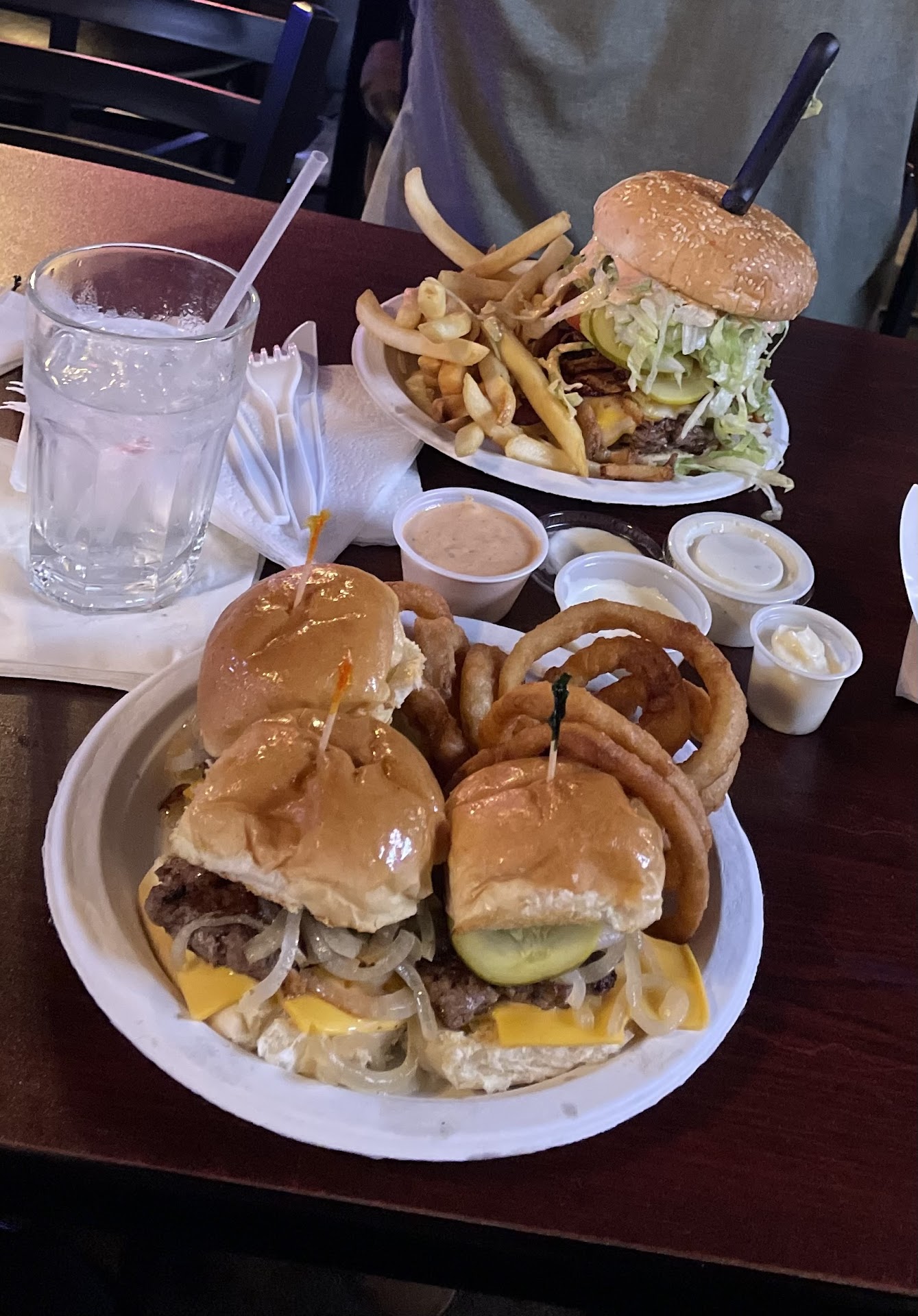 Food/Drink-It bar food. Pricey in my opinion but per the other reviews the owner talking about cost I somewhat understand. This visit I ordered a burger with onions rings. The small paper plate was a mess to deal with(another cost saving method per the owner in a review) Burger was just average and the 5 yes 5 onions I got were ok too. My friends got burgers and fries and seemed to have a larger portion of fries. Yes onions rings are big and pricey but getting 5 is bad. Plastic ware too. We had pop-flat and syrupy due to no CO2. We were given can pop when told the server about it -thats a plus on service. The owner seems big on telling you its a cost saving move for better quality food etc. If your bar washes the glasses then I think it can afford to wash actual plates and silverware. Hire a part time dishwasher/bus boy to come in later that day to do the dishes etc.