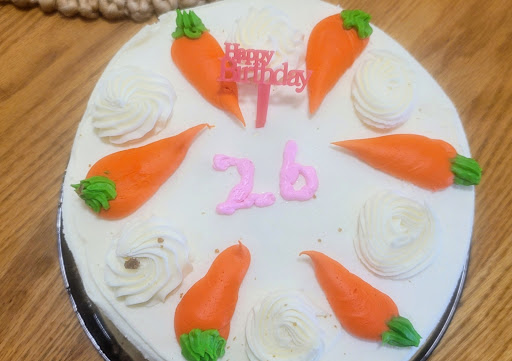 Stopped by Kroger and picked out a full sized double layer carrot cake for my daughter's birthday and asked the woman behind the bakery counter if it would be possible to have "Happy 26th Birthday" written on it for us to pick up the next afternoon. The staff person was helpful and said she could set the cake aside for me in the freezer, but that Kroger no longer allows any personalization of cakes until the time of pickup, and she instructed me to come back the next afternoon and pick the cake up and tell the person at the counter at that time what I wanted written on the cake. Came back the next afternoon to claim the full sized double layer cake that was set aside for us and asked the bakery staff person behind the counter to write "happy 26th birthday" on the cake. The employee said there's not enough room to write that, so we asked for a small "happy 26th" instead. Staff again said there's no room for that and she could do just the number and a plastic happy birthday toothpick. We gave up and agreed, and this is what we got. What in the ...? I'll reserve what I'd like to say here, and instead just suggest that anyone wanting a cake from Kroger for any event should probably...