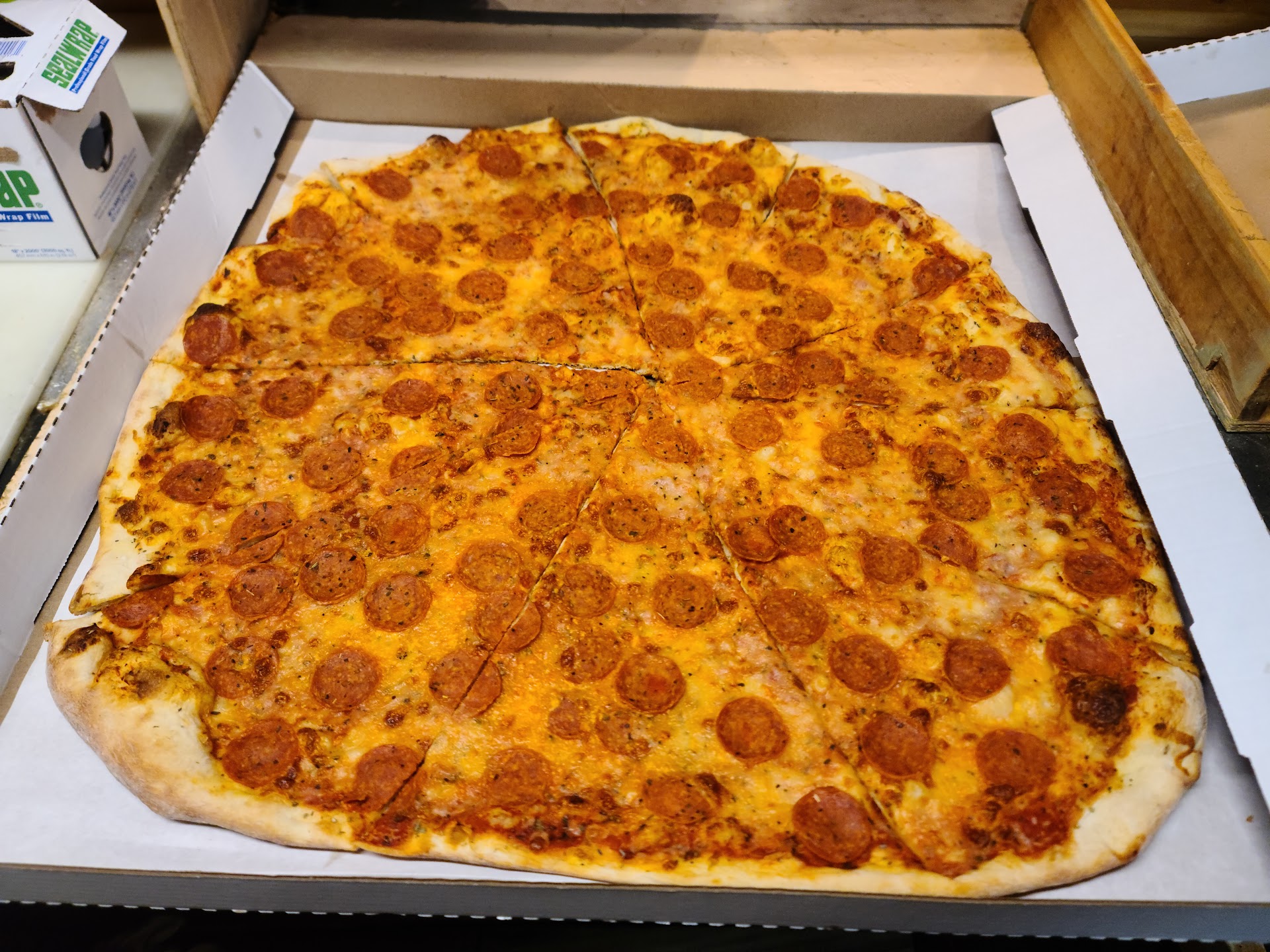 The large slice they are known for is still decent, but the other stuff was just not good and expensive. Ordered a meat lovers pie and the meats had a weird plastic type of smell to it(hard to explain). The tomato sauce tasted like it was sitting past due and the cheese had a shiny white color to it. Decided not to judge a book by its cover, and took a bite and it did not taste good. Wife wasn’t happy either. Thankfully the cheese slice held us off, but I would not recommend the meat lovers pie. Almost had the look of the pie display they gave us. It wasn’t even warm. It tasted cold and stale.
