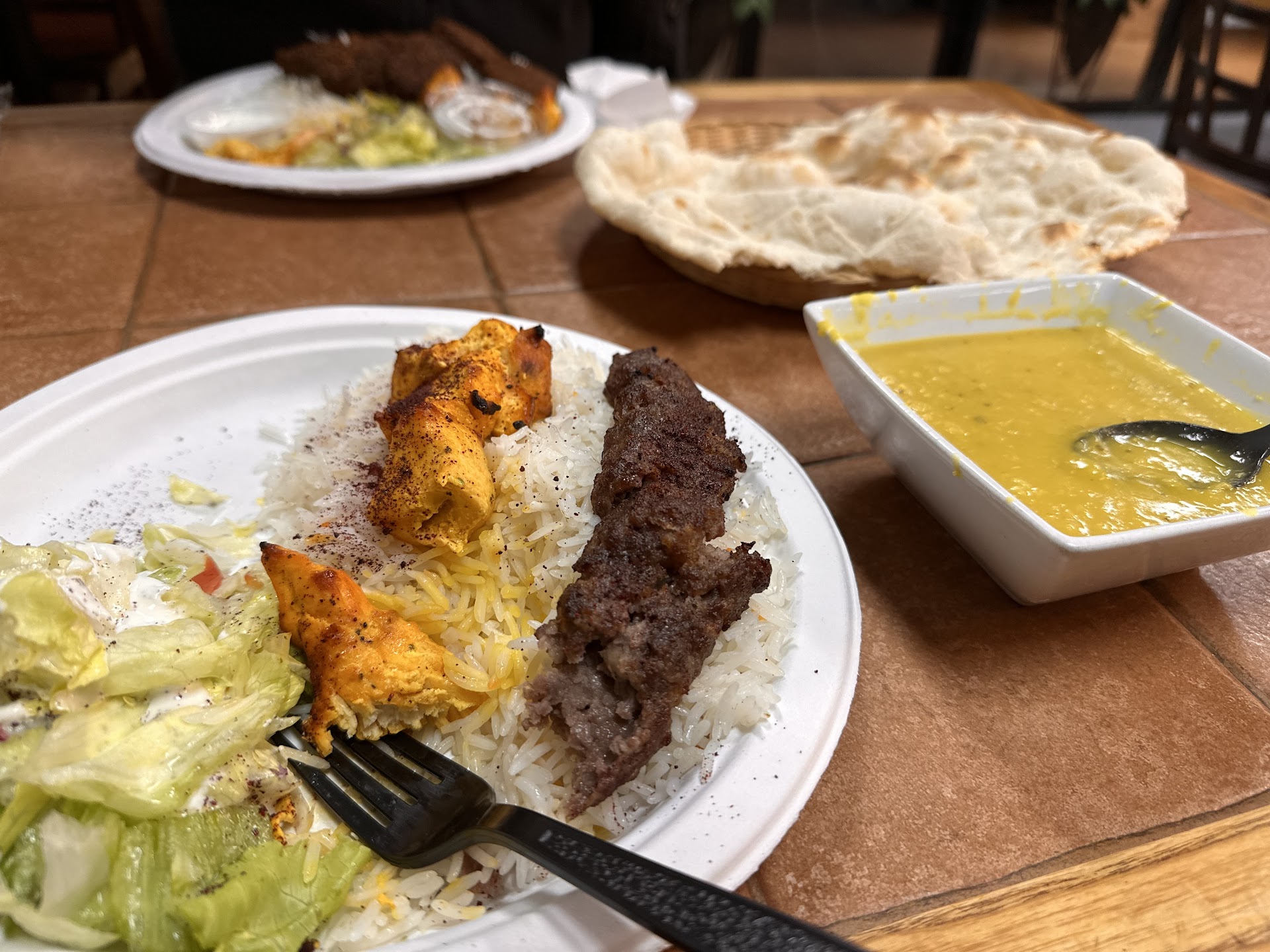 Our regular kebab restaurant having fallen short on recent visits, we decided to try someplace new. A&A Kebab showed up in a search and we decided to try it. We were not excited at the nondescript shopping center storefront, neither were we much impressed by the decor, but all that was forgotten when we began eating. The hummus was smooth and flavorful, but the naan was so warm, fresh, and tasty that it stole the show. My companion ordered a lamb and chicken combination. As lamb is one of her favorite foods, she tried that first and her facial expression sad a great deal about satisfaction before she told me how good it was, juicy and delicious. As rice has always been a staple for both of us, we were both surprised at the texture and flavor of A&A's. My companion was hard pressed to describe what made it especially good, but that might have been because it seemed to be disappearing from her plate so quickly. I was again surprised when she pronounced the chicken even better than the lamb she had pronounced delicious. We both had a lightly dressed salad with our meals. My own selection was the Kurdish-style kubba, a delicious football shaped dough filled with spiced beef and deep-fried. I am more accustomed to the rounded Iraqi version and my only criticism of this take was that the dough was a bit thicker than I like, but we were both very happy with our selections and agreed that this would be an addition to our rota of favorite restaurants. I will add, only because I am so often asked whether foreign cuisine is too spicy, meaning piquant, that the food was gently seasoned and not at all sharp. A minor criticism is that we were not asked what we would have to drink, but we helped ourselves to canned soft-drinks from a cooler, By the time we had wrapped up leftovers for a snack at home, getting our own drinks seemed right, because the father and son who served us were as comfortable as family and seemed only concerned that we enjoy our experience. We did, and we look forward to trying new dishes... with our new family. I am somewhat embarrassed to admit that I left my credit card in the reader, but I mention it because Halat, the owner's son, tracked me down online to tell me so. That is going...