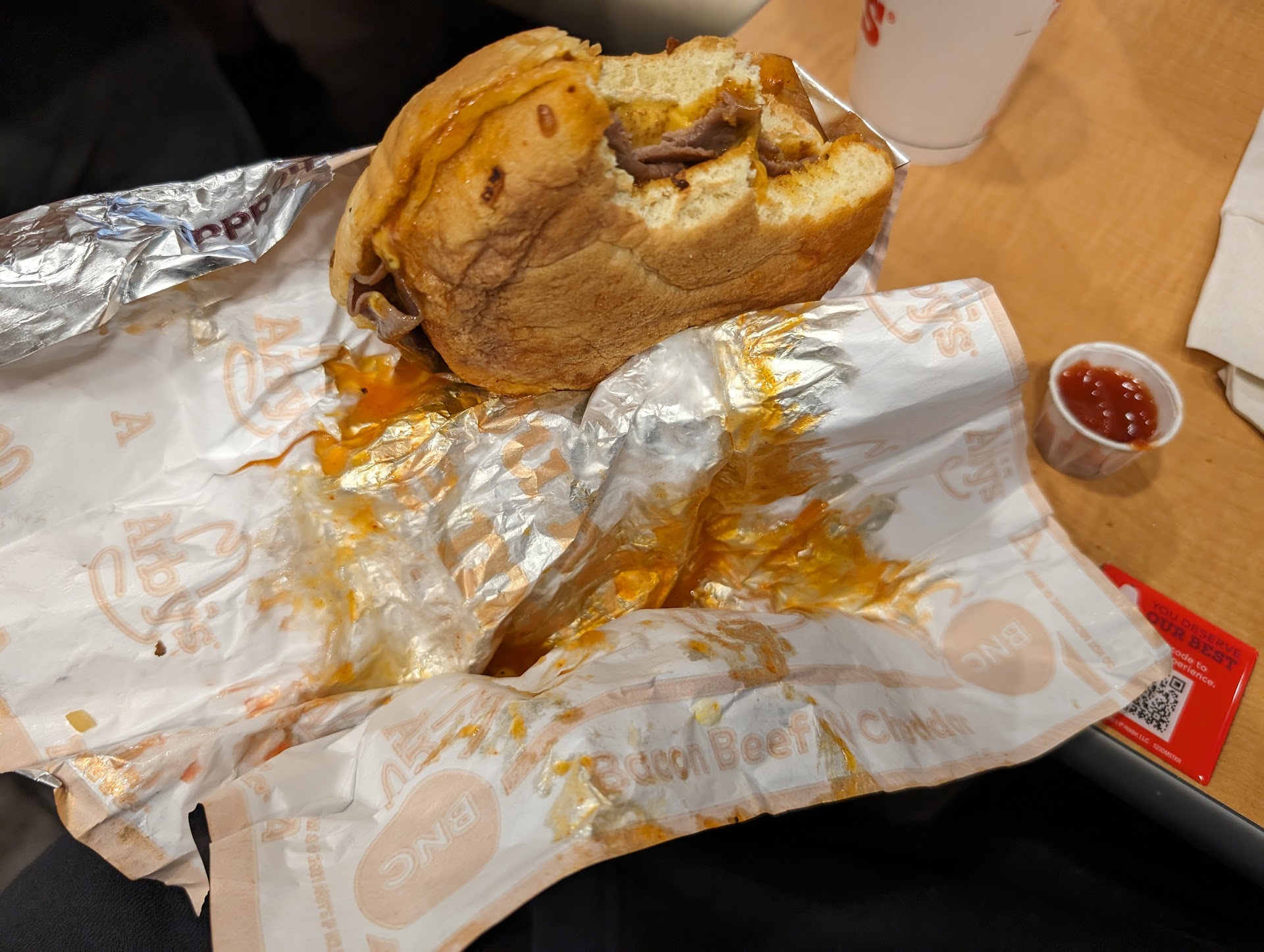 Chicken cheddar ranch was pretty good. Went through drive through and that was definitely not an inviting experience. No one in line and the kid working the window seemed perturbed the older gentlemen in the truck was taking his time to look at menu. He wasn't even the order taker. But he felt compelled to stick his head out the window and look at us. Pulled up to the window and was glad this kid wasn't handling the food. I had no desire to see his underwear. Pants at thigh level seemingly, with his shirt partially up, showing the front back and side of his drawers. No belt. And of course the window is at eye level, so yeah that was nasty. Then he leans down, hair flopping down in the window, showing his bruised up neck from whatever was trying to devour him recently, and asks about condiments. Stands back up, grabs bag and puts the bag out the window. I could comment more but I'll say Arby's is good food, but you should consider patronizing...