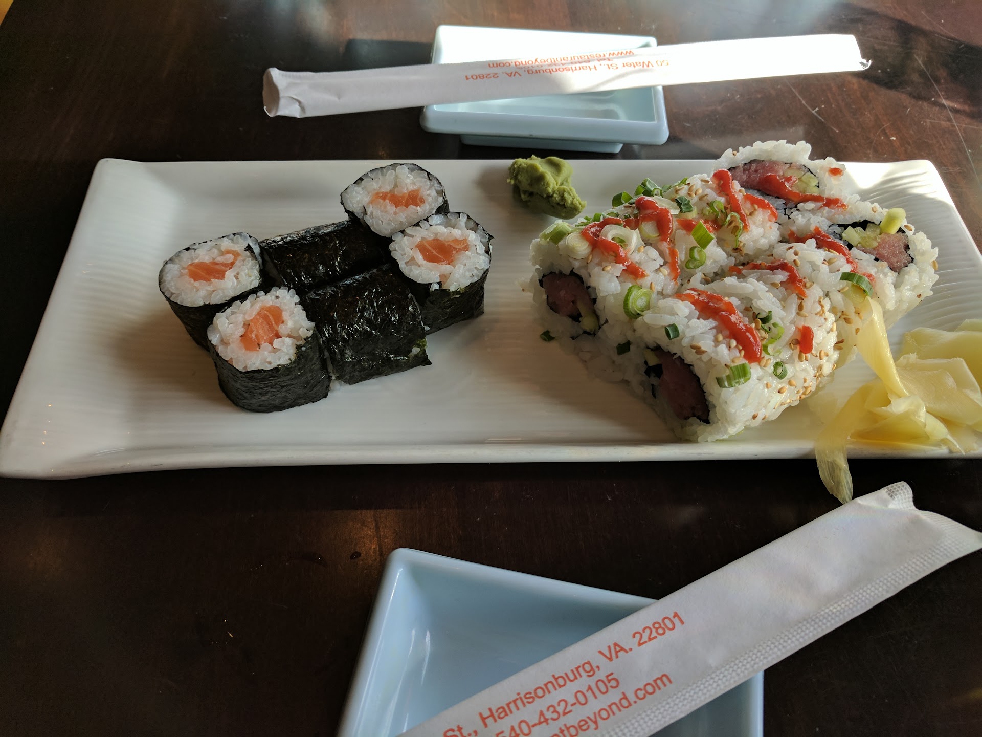 Read moreThis was our first visit here and we had a very pleasant experience. Our waitress, Kim, was super helpful and friendly. We ordered 2 rolls of sushi, salmon and spicy tuna. I am pretty picky about my sushi and I can honestly only say it was OK. I would still rather go other places in Harrisonburg if I was just eating sushi. For our entrees, I ordered an Oriental Chicken Salad and my husband ordered something suggested by our waitress called the Kim Special. Guys.....I cannot explain to you how deeply amazing the Kim Special was!!! It was a Korean noodle soup with ramen, rice patties, a soft boiled egg, tender beef, and an absolutely stellar spicy bone broth. I am a HUGE fan of Phô and this is very similar but knocked the socks off of any traditional Phô I've ever had!!! My Oriental Chicken Salad was good but next time I come here (and trust me, it will be soon) I will only be ordering the Kim Special and I highly recommend you...