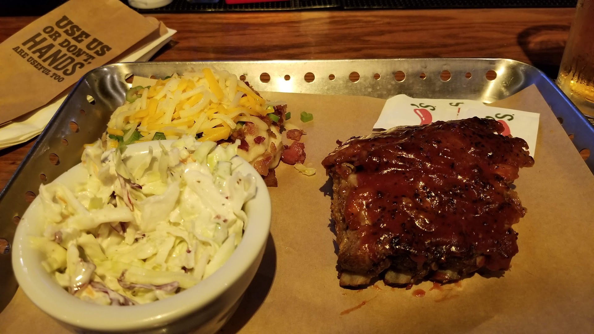 Ordered the 1/2 Ribs with slaw and loaded mashed for $14.29 but was served a child's portion of ribs and lukewarm mashed not hot enough to melt the cheese. Thank goodness the slaw was good. I'm Not exaggerating there were only 3 rib bones when I was finished eating my "meal"