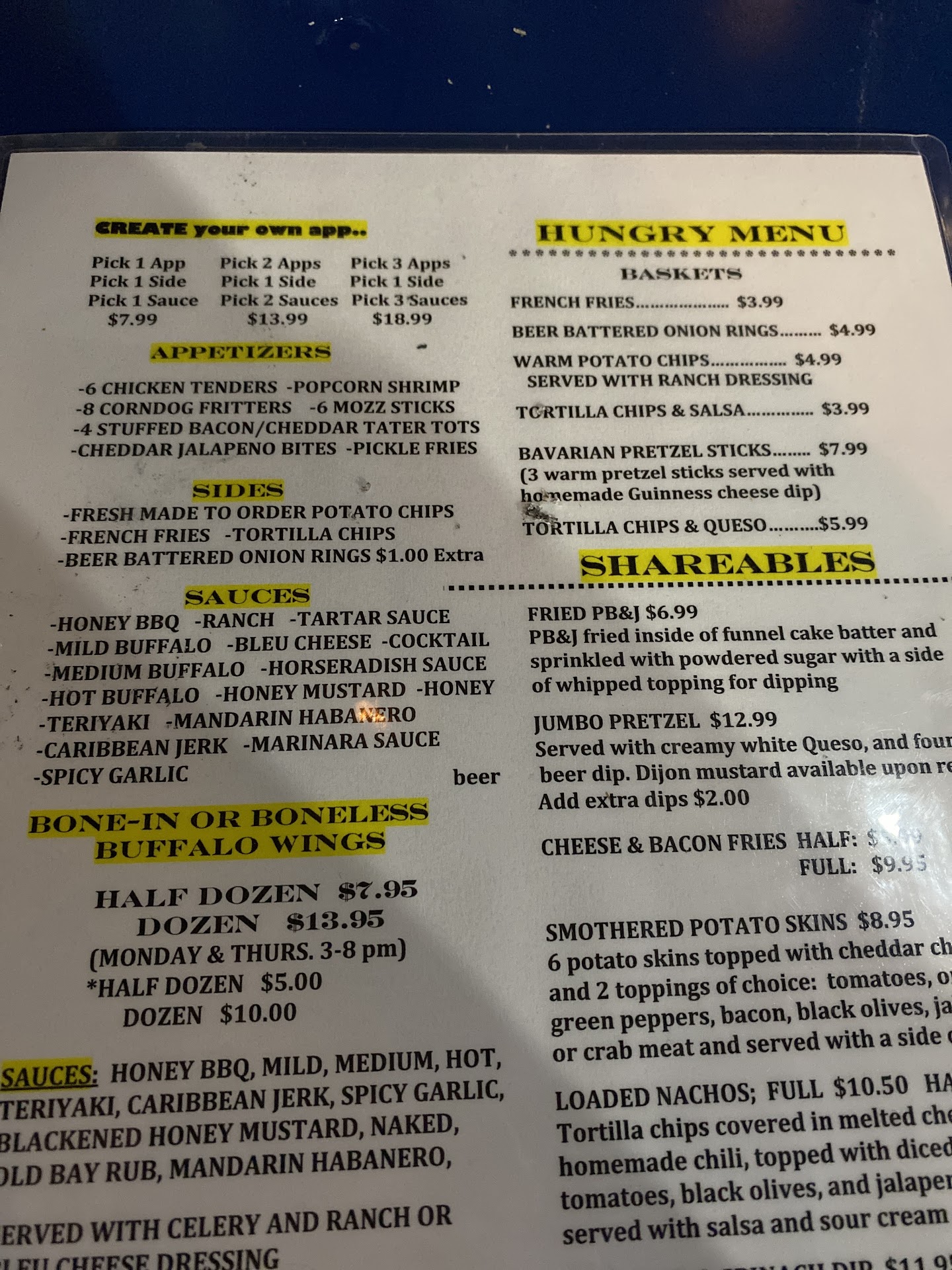 Maybe you had a ton of business due to the big game between JMU ( season opener)and whoever the night/day before, and you fried up of ton of stuff. But you need to clean your oil. Hush puppies are not supposed to be dark crunchy little hard balls. The ones we were served we had to cut open. The mix inside was good but overcooked in dirty oil=BAD!!!!! It also ruined the crab cakes that appeared to be cooked from frozen, which is fine, but the dirty oil tainted them and they were cooked too long.