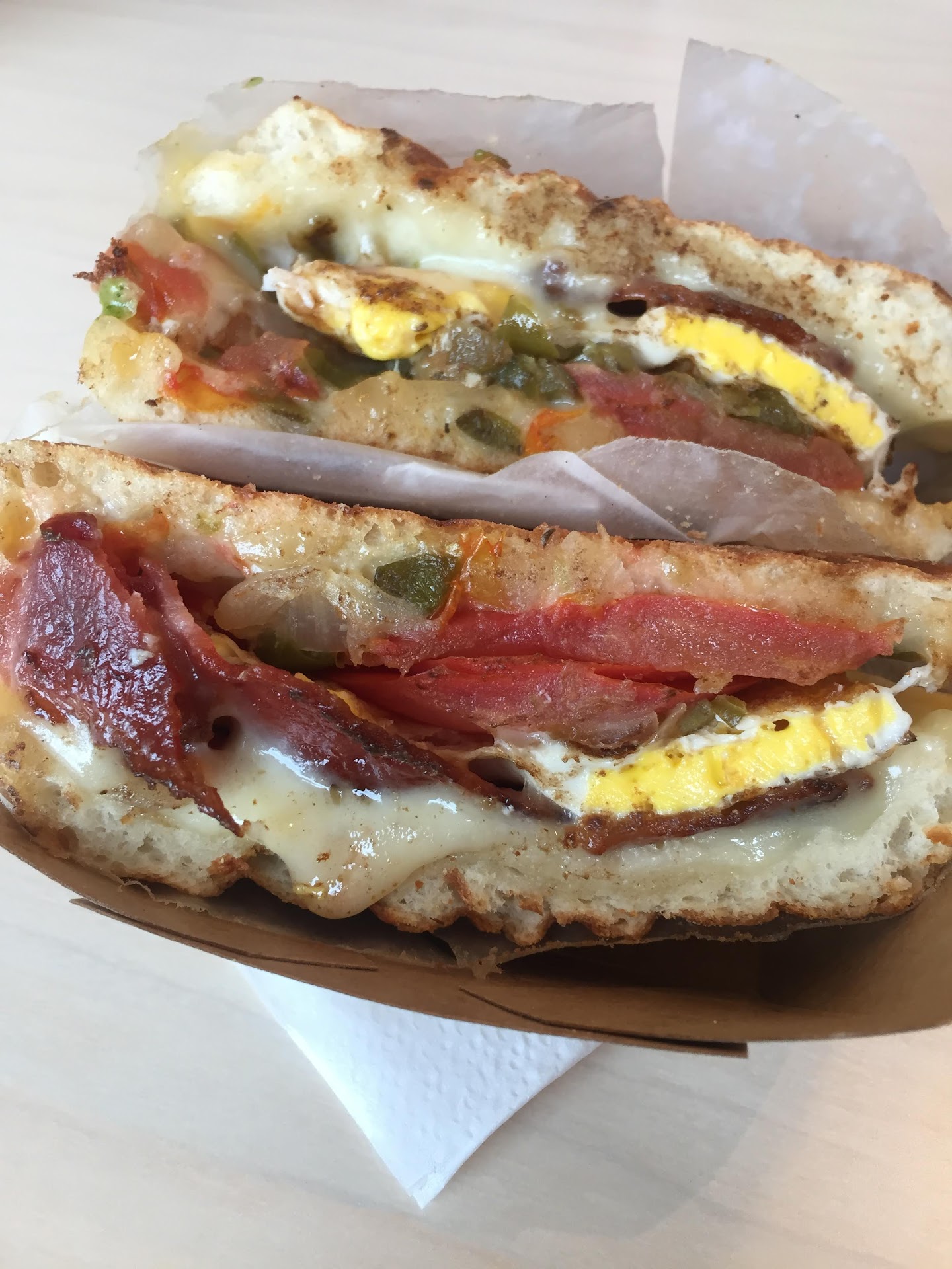 My fiancĂ© had the triple Lindy with pesto and bacon and he loved it. I had the more basic Grilled cheese with tomato because Iâm a classic kind of gal- I believe it was called the Johnny? Delicious!