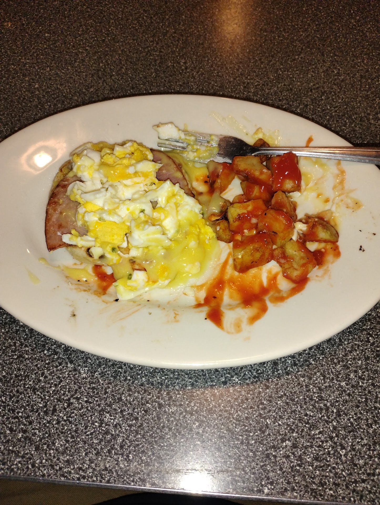 To start, she says they have Coke products and I ask for Cherry Coke but they don't have it. Then I ask for steak tips. They don't have it. Then I ask for chicken Alfredo. They don't have it. Then they finally tell me all the things I can't order which is anything with chicken or steak. Nice. I'm about to walk out at this point but I decided to try the eggs Benedict. This was a terrible mistake. It was the worst eggs Benedict I've ever eaten. They Didn't ask how I wanted my eggs but who the hell likes them cooked until solid? Anyone who's anyone wants runny yolks. They were hard. The hollandaise didn't have flavor and the ham tasted like sandwich lunch meat. The potatoes had no seasoning of any kind. I almost never leave food on my plate at a restaurant but I didn't eat the potatoes because they were nasty. Even ketchup couldn't save them. VERY disappointed. Came to this truck stop specifically for this diner and left wishing I had just gone to bed instead of to dinner. $20 for the worst meal I've had in a long time and I'm a trucker who gets lots of bad meals. Definitely...