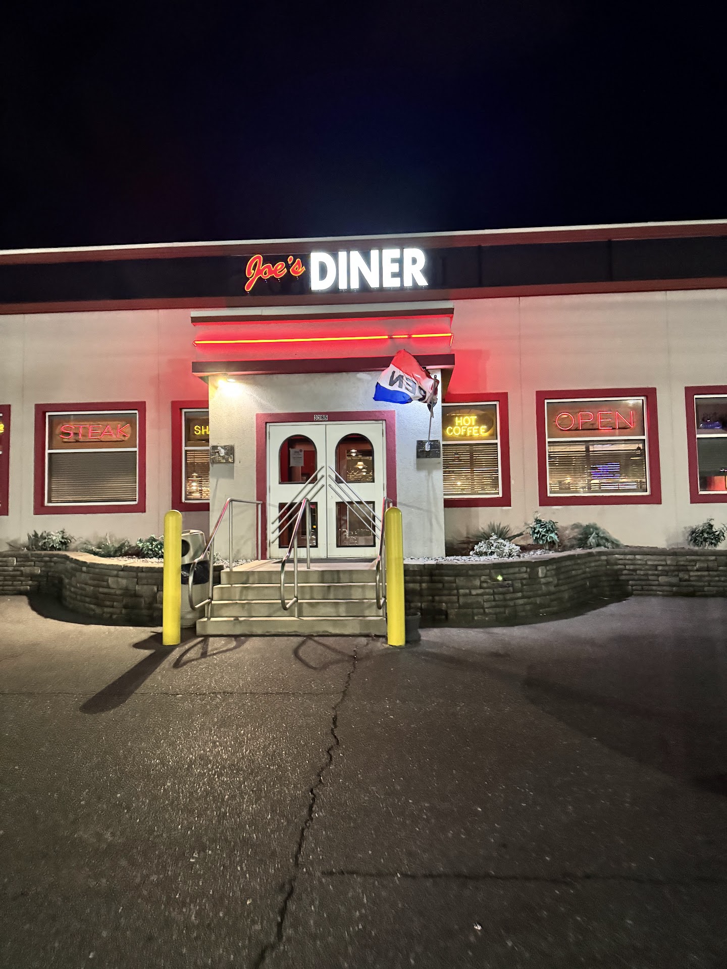 Read moreStopped into Joe's late evening after a long day of traveling and had one of the most entertaining experiences ever. The location of the diner roped us in quickly, it is easily accessible from the many nearby hotels.