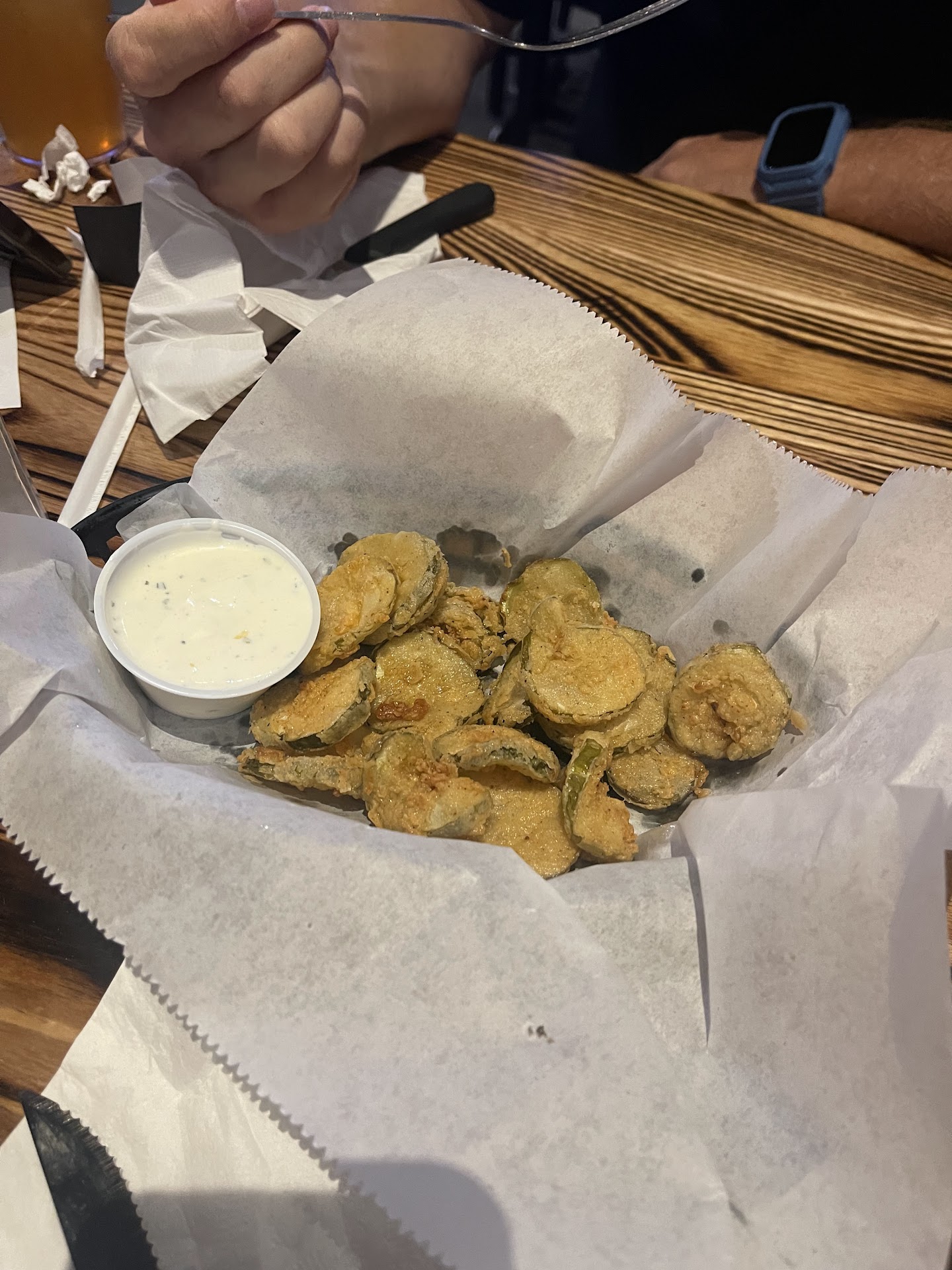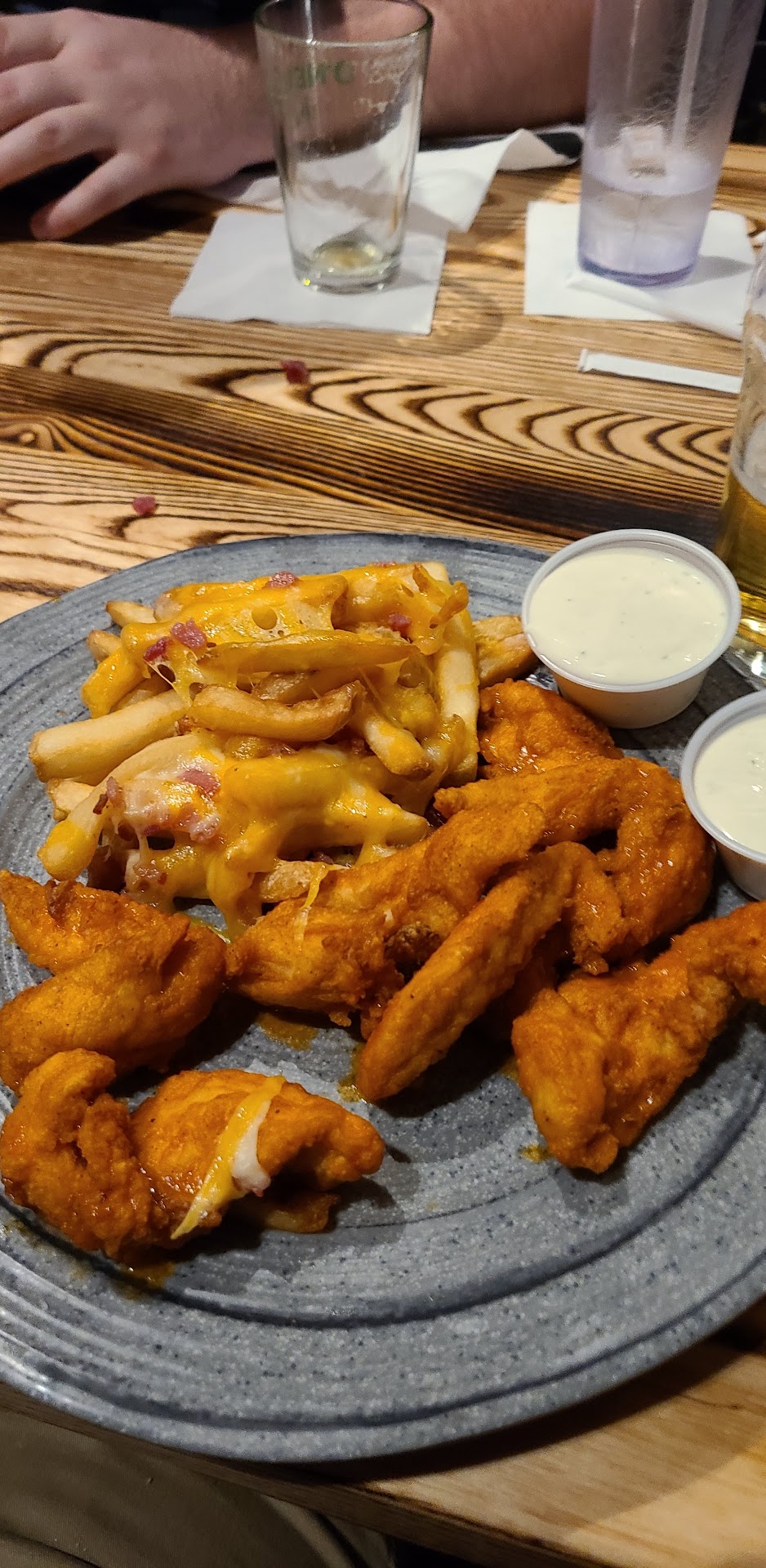 Read moreWife and I ate here today for lunch. First time visit. It was not busy but people were starting to flow in. Wife and I are not at all part of the "younger" crowd yet we were taken to the bar and seated. Right away we knew it was too noisy and asked to me seated in the other much quieter section. They did so without and issue. The wife ordered Fish Tacos while I ordered Buffalo Chicken Wings and an appetizer order of Homemade Chips. They were out of the Salt/Vinegar flavoring I wanted so I went with the regular. My wife said her Fish Tacos were very good so we're at 5 stars here. My chicken wings arrived nice and hot and with a slight crisp as I requested. But the Buffalo sauce was very weak and they had little to no Buffalo sauce flavor and in fact they had a pretty greasy flavor. I left several wings which is something that does not happen often with me. The homemade chips were a mix of soggy and crispy with about 1/4 soggy. Without any seasoning they were just so so at best. Our server was efficient and friendly. My food knocked the 5 stars down to a 3. The restroom was fairly dirty feeling with slick floor and for such a large restaurant only one stall and one urinal. And the paper towel dispenser was not working. And management. Please get some kind of Diet Soda there besides just Pepsi. Pepsi and Coke need to disappear. Not sure I will be back but...