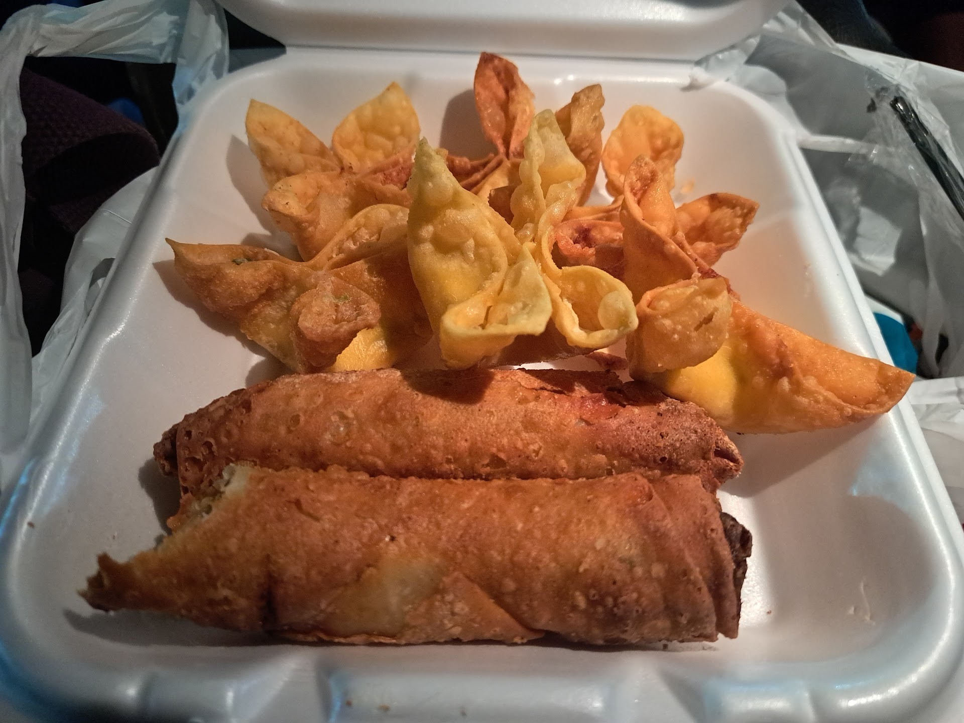 Read moreI ordered the large plate and asked the Gentleman What do You Like? I told Him I don't Like "Hot & Spicy!!" I'm Allergic to Hot Peppers okay 🤢!! "You are Not a Good Salesperson!!" He replied " sizzling shrimp is new it's sweet but Tangy, beef n broccoli is an all time favorite along with the Orange chicken." I didn't taste Chicken in My Egg Rolls but They were Good. It's Fine but "The Sizzling Shrimp were the Craziest Hottest Things Ever to Eat ... Spicy is an Understatement!!!! No Sweet or Tangy Here Friends!! The Fried Rice had HUGE Chunks of Onions should NOT BE in Fried Rice and your Chow Mein Noodles ~ Who is Your Cook? They Stuck Together and Chow Mein Noodles should not Stick together if Cooked Right. The Orange chicken ~ nothing was Extremely Spicy! The Beef n Broccoli was okay...