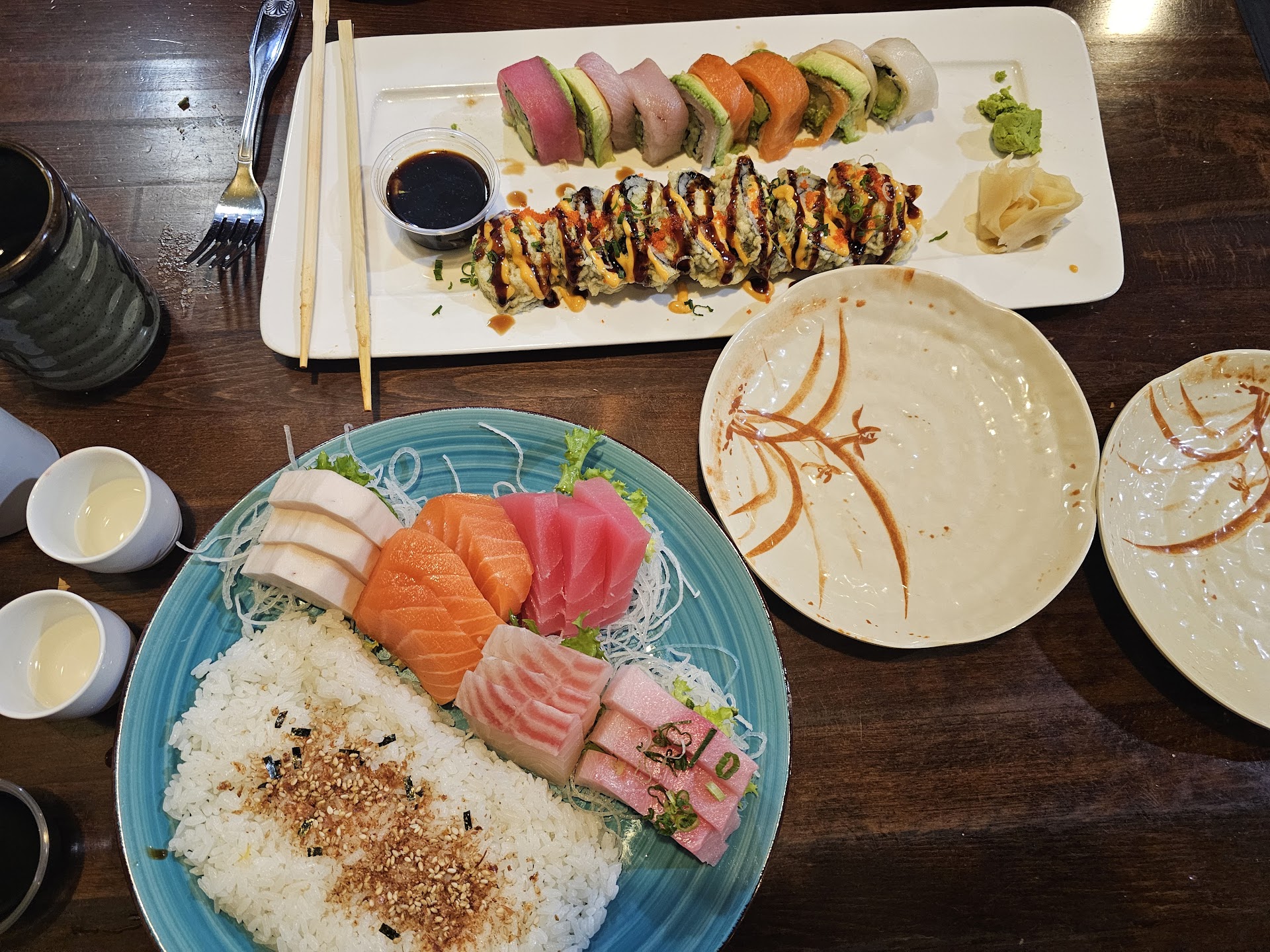Read moreNot bad, but needs some improvement. Sashimi was cut generously and chilled, but a little lacking in flavor. Either not full sushi grade, or not aged properly. Wasabi could have been a little stronger. Salad was tasty, and really liked the crunchies on top. First thing you see when you walk in is that they are set up for takeout, with table and racks full of items that should be hidden from customers. Sushi bar area felt more like a noisy deli, rather than a proper sushi restaurant. The TV with sports in the corner, and another rack full of restaurant supplies right next to the sushi bar didn't lend to a decent atmosphere. The place is kept clean, including the bathrooms. Could use some sound dampening to absorb the noisiness of the kitchen, sushi bar, and customers. Clean, but reflective surfaces make it louder than it should be. Special rolls and sushi and sashimi meals are about the same price as anywhere else, but they give you disposable plastic condiment cups for your soy sauce... A couple of decorative folding screens, a proper host stand and a few other things could quickly add another star to...