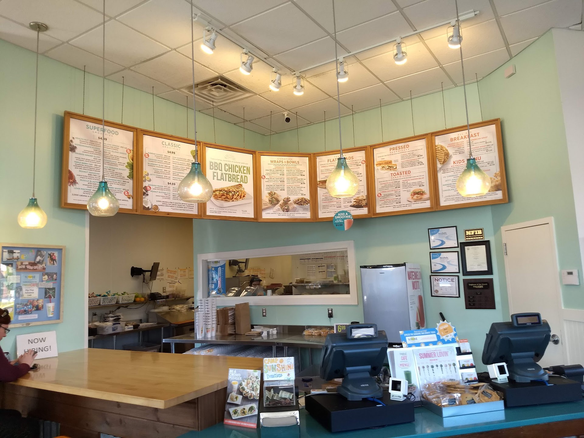 Second time visiting (out of towner here visiting family) Tropical Smoothie located in Harrisonburg just off 33. This location seemed slightly overwhelmed by the little volume that was in the store (3 people) I'm sure the drive thru and curbside/ call ahead orders were keeping them busy. I typically order the Chicken Bacon Ranch Flatbread with Apple Kale Slaw and Triple Berry Oat smoothie. I opted to dine in due to feeding my 16 month old. Everything tasted fine. However, while eating I noticed the girl wearing the head set, Sara (not sure of the spelling) approach a gentleman working there. She loudly and aggressively asked him where his visor/hat was. He calmly replied to her that this situation has already been handled with management. She insisted on poking at him, attacking if you will all while you could tell he didn't not want this confrontation from her. I'm not going into great deal of the exchange between the two but as someone who has worked with the public, in the restaurant/food industry, hospitality, managed etc you name it I've done it, I was completely taken back by the way this girl handled this employee. She should not be in a place of supervising or managing (I'm not even sure what her place is). The way she talked to this gentleman was far more offensive than he not wearing his full uniform. Perhaps she should to take a course on how to properly handle and approach people/employees. Starting with pulling others to the side or in an office to address issues or concerns. Not in the eye of the public who are trying to enjoy their meal with family...
