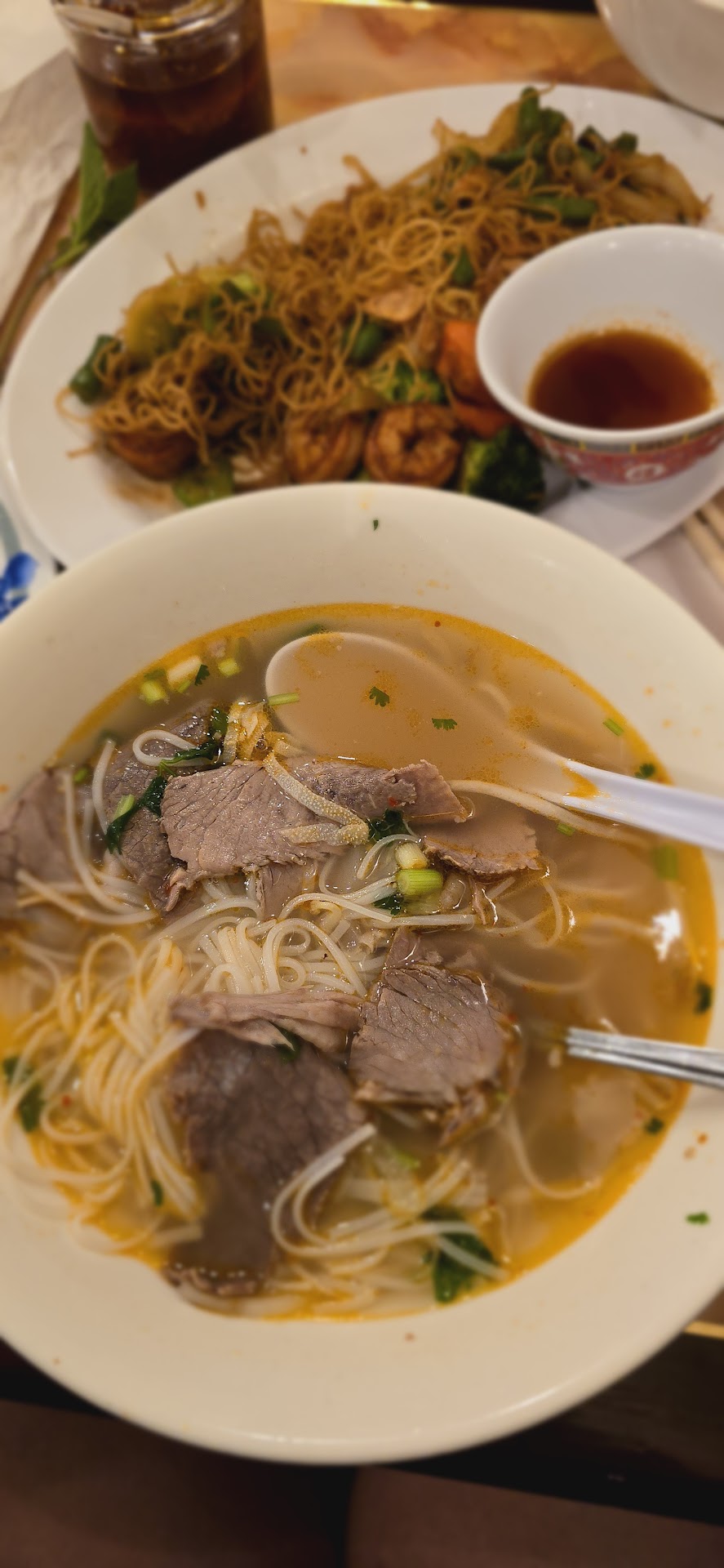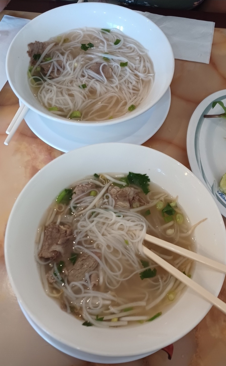 I recommend trying their pork and rice, but the pho is equally good (soupier, obviously, but will fill you up easily!)