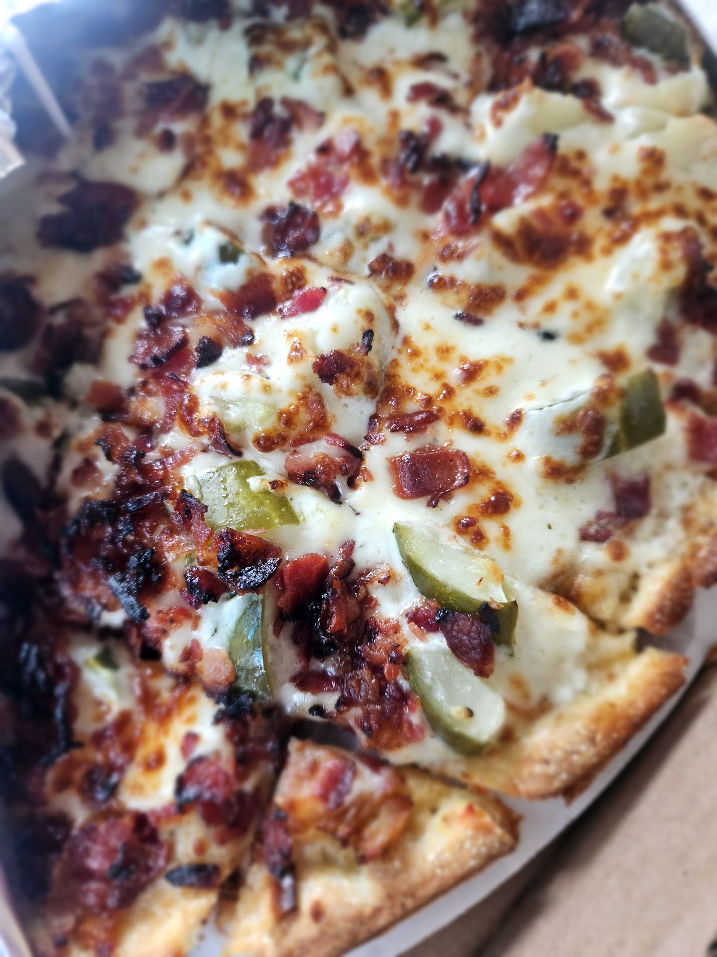 Then, like a hero arriving just in time, my pizza showed up FAST. Enter: the Meat Eaters on original crust 🍕. This thing wasn’t just pizza—it was a carnivore’s dream. Sausage, pepperoni, bacon, ham, and enough cheese to make a dairy farm jealous 🧀. Every bite was pure joy, a perfect balance of crispy crust, gooey goodness, and smoky, meaty perfection.