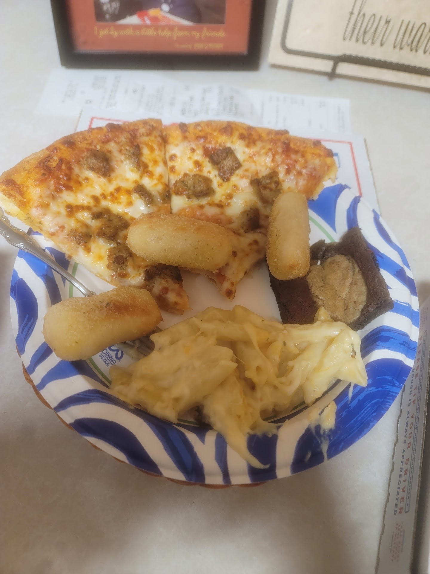 Let me tell you what, the young man who is working by himself on a Saturday night blew it out of the water, and ran circles around what a full entire staffed Domino's on 20th and Harrison can do. this kid is spectacular, he is nothing short of epic and Nate you need to give this young man a raise, because I will tell you what, I have never ever in my entire time of Domino's history of being able to order online and seeing your wait time. Never have I seen a wait time of only 7 minutes whatever you're holding back and not giving this kid you need to you need to give him,because this kid can hold it down. $20 combo and the way that I get it and this guy made it better than I've ever tasted in my whole entire life!!!!!! I cannot remember his name I believe it's Mason I could be wrong but you hired an All-Star Nate!!! keep him in your corner!! Plus the awesome girl driving was still smiling with a huge stack of orders walking out the door to go deliver. Phenomenal pair of employees!! The 2 of them are the shining example of humans making the very best of their day at work. They appeared to be living their best...