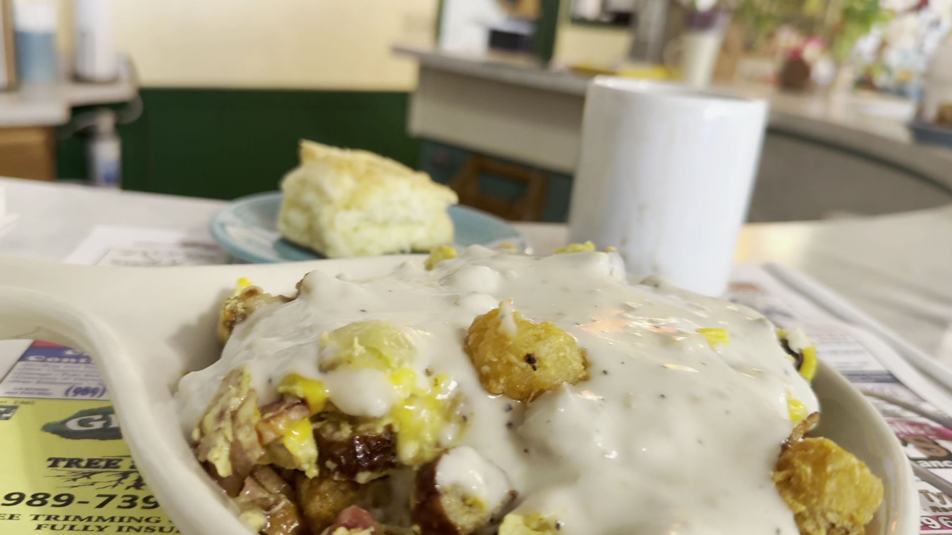 Read moreMy experience was great and I enjoyed the vibe during a late morning breakfast. The place was packed, parking lot too (there are two parking areas on either side of building). Pictured is the Toolbox, consisting of crispy tater tots, eggs, bacon, cheese, onion, bell pepper, and breakfast gravy, served with a biscuit. Not what I would typically get, but I was HUNGRY and ate every bite. Very satisfied. I ordered a bacon, egg and cheese croissant to go for a friend and was impressed with the croissant (substantial). Other patrons seemed friendly and I was politely asked about my Cybertruck. The only thing I would say that’s at all negative is that the place is successful, and thus busy. The morning I went, nearby (competitive) Red Fork was closed, so it was that much more busy. Service for larger groups seemed slow and I noticed a guy near me whose order left him short 2 sausage links and some other problem with his bagel. My vibes were good and I have the impression that they run the place well and that only if you can barely get a parking spot and are a party of more than 2 should you expect a bit of a wait...