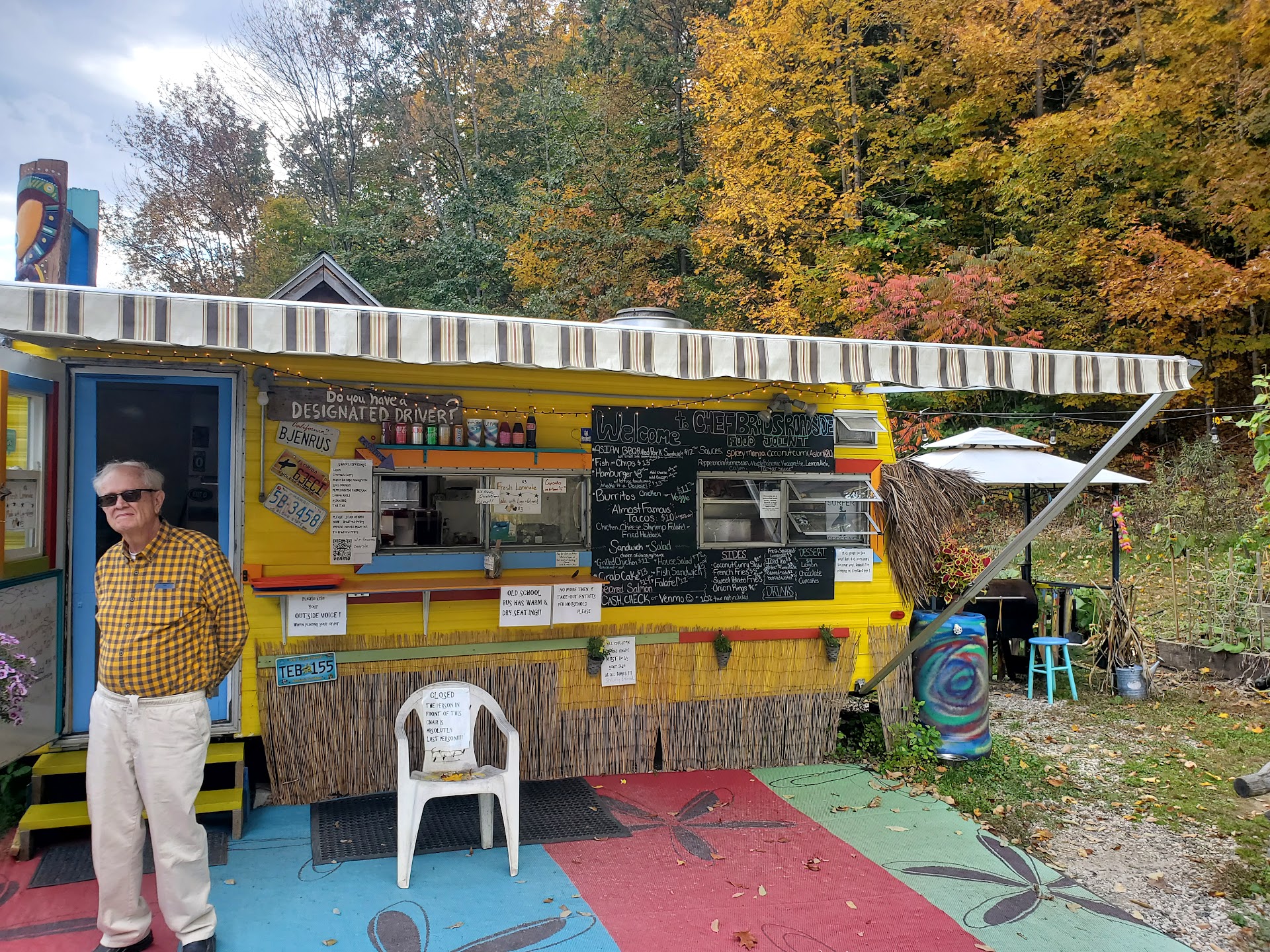 Read moreWe stopped here bc we were camping right down the street. So glad we did the food was very good. Husband got a burger with fries. Warning burger is big and delicious. It was cooked perfectly you could tell it was all fresh ingredients. I got the sausage and peppers it was also really good, but getting a burger next time. Had a maple cupcake and a chocolate cupcake to take home. They were awesome moist and airy with cream cheese frosting yum! They had a nice variety of food for a small roadside trailer. Besides what we had They served fish tacos, falafel, Asian bbq pulled pork taco, onion rings and more. It looked like it changes depending on the specials. You can sit outside or in an old converted school bus.. We will definitely go back and highly recommend. We got there right at 5 there was a line so be prepared. Cash or venmo only so be ready. But so worth it keep up...