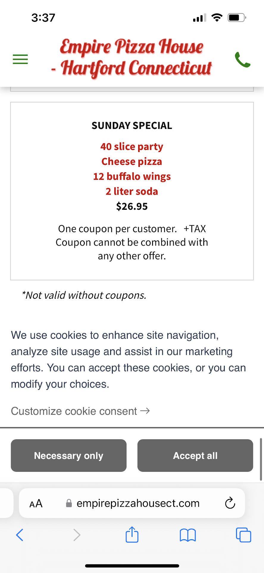 Have to be brutally honest here, only because I love the place so much. My family and I have ordered from here since we came from our home country and it's always our goto pizza place even with everything going digital and new places popping up. Used to live pretty far and only got delivery, moved closer in later years. I've bought from here through the different owners, cooks, etc. I love Empire, but it's not without it's flaws. If you're here for the pizza, you'll be satisfied with what they give you. Recipe hasn't changed much since when I was a kid and I don't think it has to. I've always found the pizza really good whether I'm eating with my family on a Saturday night, or we're having a party and need to feed 10+ folks. Good selection of toppings too. Pizza has the right amount of tomato and cheese, crust is just right too. However, I will mention that it can be inconsistent sometimes, though I want to chalk it up to new cooks or a rush. Sometimes there's less cheese / more tomato sauce then normal, sometimes the crust is cooked too much and is too hard, sometimes there's way less pepperoni/toppings than usual. This doesn't happen too much that I go back to get a refund, but it's something I've noticed over the several years I've ordered from here, but nothing that really makes me lose faith in the restaurant. Besides that I have 2 major gripes with the place. The first is that all other food choices aren't exactly appetizing. I've tried the wings, burgers, salads, hotdogs, tenders, etc all at least once, and I can't say I was ever satisfied with them. Either they were lacking flavor, weren't cooked right, or serving size was way too small for the price. Best example I can give is the wings they have. I've gotten them super overcooked every time I've ordered them, and with way too much flour. There wasn't much sauce put on them either, and the side of sauce they give you just isn't enough for how many you get. Case in point, if you're gonna buy food here, just get the pizza and drinks, get the other things somewhere else. My other major problem I've had is with delivery drivers, though take my criticism with a grain of salt since I haven't ordered delivery in years since i'm close enough it's cheaper for me to pick it up. If you order delivery, expect to wait 2-3 hours to get your food, especially during busy hours on weekend evenings. I've also had issues with certain drivers being aggressive during deliveries and dropping the food off in bad condition or not arriving despite giving them my full address. I don't know if EP still hires these drivers, but it was an issue I and others have dealt with in the past. Other than that, love Empire and their pizza, hope they can improve their quality over time with...