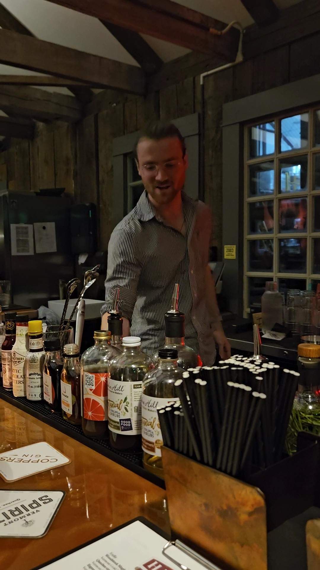 Very well-blended and tasty cocktails. They all are very well presented as well (it's a treat to the eyes!) It's next to the Vermont Spirit distillery and they get all their spirits from there. Liked the maple drop cocktail very much. My partner loved his gin old fashioned with red wine float and my friend liked his apple jack rabbit cocktail (with esprit De pomme) and rosemary julep (with bourbon and rosemary syrup and lemon). Great vibe and amazingly warm service! Will be back again as long as I'm in the area. Special shout-out to Leo and Meg for their amazingly warm and friendly service!! Leo made a dealers choice cocktail with vodka, bourbon, lemon, and maple syrup and it was really amazing (Leo, are you really gonna name it Sharan's special? 🥹🥹🥹)! The ginger daisy with gin & ginger tumeric shrub also also wonderful. They do have...