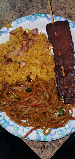 This is a plate of vegetable lo mein, prok fried rice and teriyaki beef sticks. The veggie lo mein had very little vegetables and flavor. The prok fried rice could've had more peas and carrots and less pork but tasted very good. The teriyaki beef sticks were very dry as you can see, chewy with lots of fat and had an awful taste. No one could eat them in my house so unfortunately they went in the trash. I've been here other times when everything tasted very good so I think it depends on who's...