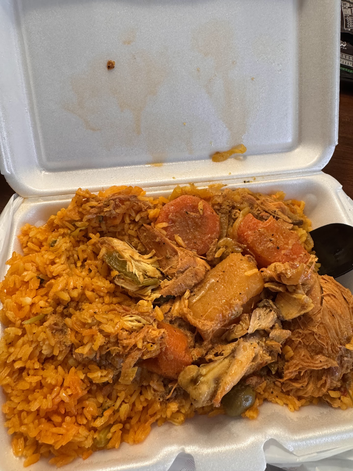 What I got was a smelly hot mess. The picture and description on the website is pernil, the meat with suggested side of rice and other items etc. So when I ordered the large pernil I was expecting a large order of meat. What I got was about 6-8oz of meat and all rice. Plus the small rice. I thought well, that's misleading but I was hungry. When I starting eating, the rice tasted old and fishy. Smelled worse. Meat was bland. I just couldn't eat it. Why would you add seafood to the rice and not add that in the description? I'd have never ordered it, if it came with seafood. Again, it stunk horrible. I tried for a refund but was blown off. 40 dollars on food that when in the garbage. Kick in the balls was the Pepsi. Ordered a 20oz Pepsi and got a can instead. But they still stayed with the $1.50 difference between the two. I can't get my money back but I can leave a review. Beware. Order inside if you need to and see what they put in your plate. Don't do delivery. I think that's how much care they put into...