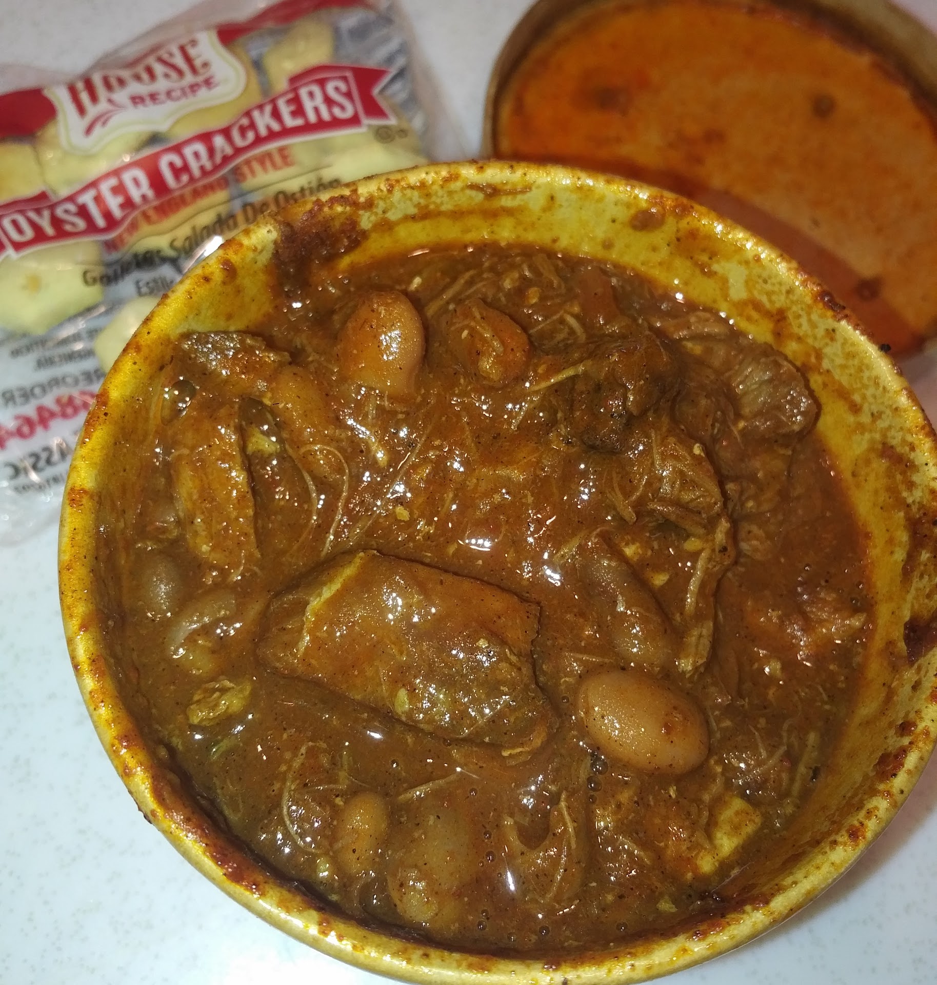 May 2023 - The chili this day was a pork version. Nice surprise. Heating it up at home later, it's good but I still prefer the beef. For me, this recipe is better than the chicken and vegetarian they also make here.