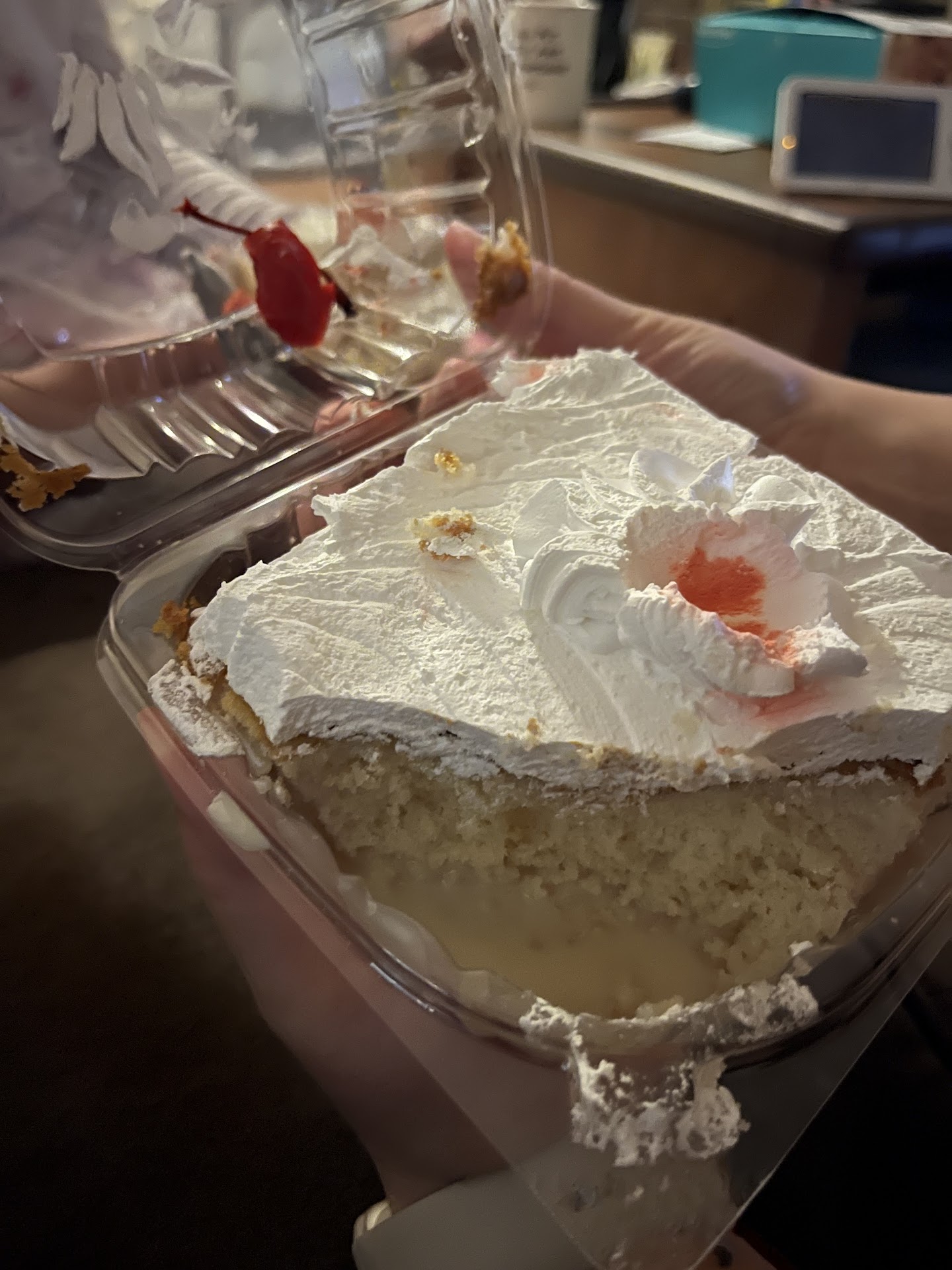 Read moreGot two tres leches cakes from here, one for me and the other for my daughter. We waited until after dinner to eat them and when I took my first bite I realized it tasted weird. It smelled like off milk and it was also very dry because they do not soak the cake. But I tried to eat a second bite anyway thinking maybe it was just me. After that second bite I tried to eat the cherry and as soon as I bit into it, I got the strongest taste of alcohol and spit it out. It actually burned the back of my throat that’s how strong it was. I don’t know how long that cake had to be sitting there for the cherry to ferment like that but I have never experienced anything like it. My poor 10 year old daughter ate half the cake even though it tasted spoiled because she didn’t want to make me feel bad. I’m praying that we don’t get food poisoning. Such a shame because the woman behind the counter was very nice. Unfortunately, I will never go back here and would never...