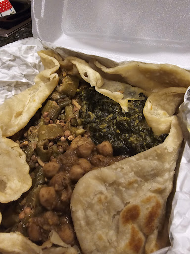 We ordered goat curry, veggie plate (spinach, channa, double okra instead of potatoes), roti, beef bowl, and chowmein with jerk chicken. The goat curry was perfectly cooked. It had a beautiful blend of spices and soaked wonderfully in the roti. The meat was halal and fresh, and it was coming right off the bones as it should be. The salad that came with the chowmein had a delicious homemade dressing, and the jerk chicken was nice and spicy.