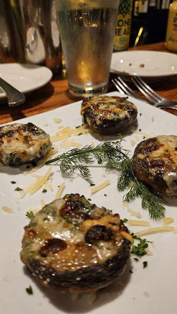 As we were served drinks and finished taking photos, we put away our phones and marveled at the sensation of being back in time. With the rain tapping at the wide windows around us and no vehicle noise to speak of, you'd be hard press to name what year it was. We placed our order, and went for different types of cuisine to see if the quality stayed the same across the board (I went with Italian, and she got the burger). Twenty minutes of drinks and conversation later and our food arrived.