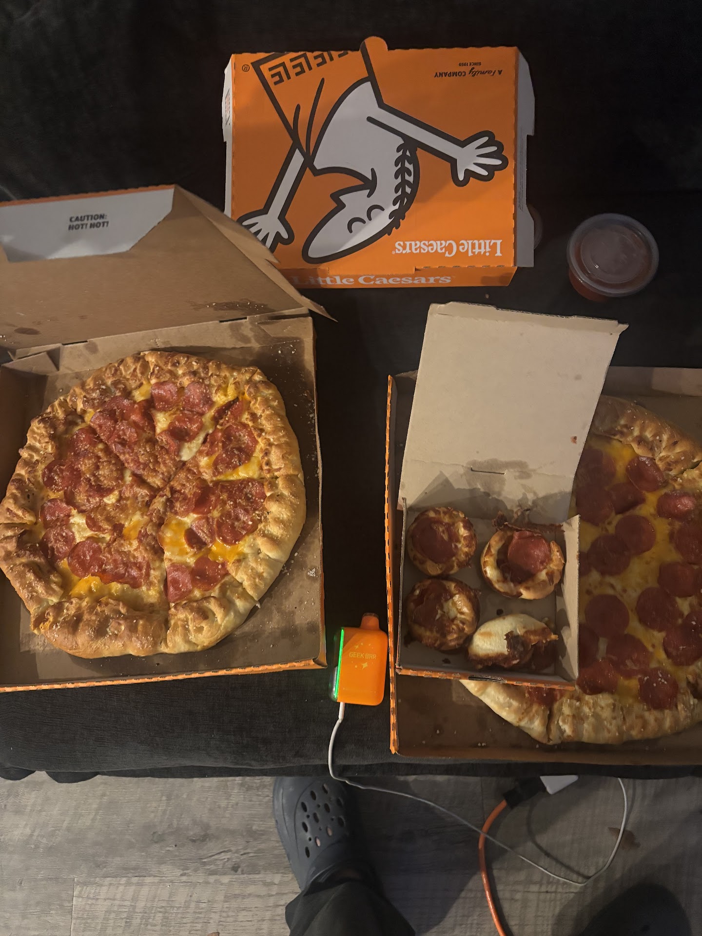 Tired, it’s been a day. So, why not order pizza for the family I thought! Ordered a crazy bread, large pepperoni pizza and a large ham and jalapeño pizza for delivery. 9:13 pm we got the texted our food has been picked up. I was excited. We live a total of 4 mins away from this location. Maybe, I shouldn’t have been so lazy, and got it myself. Well, our driver Kelly sat there in Walmart parking lot for a good 20 minutes. As we were calling doordash support, we were told the food would be there in 5 mins…. NOPE! they then pulled into the hotel behind Walgreens for like another 20 mins… okay, but on the way whatever right, NOPE! The car finally pulls up. A beaten down car with one headlight, driver is wearing no shirt, and a person in back seat falling asleep, while Kelly our driver gets out of car. Well, whatever, at least we can eat now. When we opened the boxes… well first of all, no sauce on either pizza and was stuff crust, what I assume cheddar cheese on pizzas too!? Crazy puffs, which we did not order. And our jalapeño and ham pizza was also a pepperoni pizza, stuffed crust with no cheese. Maybe, just maybe this pizza fits someone’s taste… but not ours. I unfortunately, just ate cold pepperoni off the pizza, because it was...
