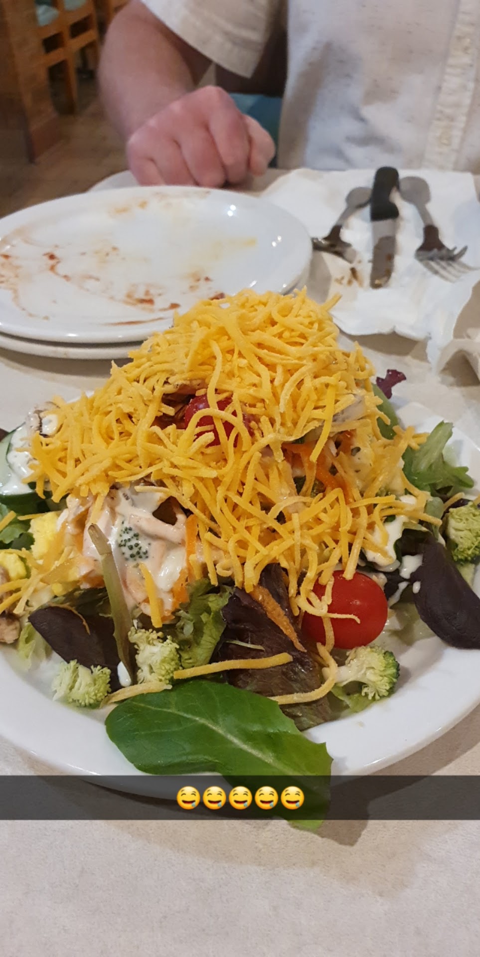 The New Bar is a DOWNGRADE! You can't reach the dishes in the back row without bending down and reaching your arm up and UNDERNEATH the LOW LOW plexiglass guard, this can't be more sanitary, a great big BOO to this designer! (I am only 5'3, I imagine more difficult for those taller.) đĄ My favorite item has been changed, No more breaded deep fried chicken tenders, replaced with preformed chicken nuggets, Boo! đĄ đWaitress was very nice, Foods I tried and liked: Bacon, Cream Gravy, Buttermilk Pancake with real butter (I requested), Honeydew Melon, Fried Apples, Scrambled Eggs. Biscuit I had was great on the very top and the bottom but the middle was heavy and undercooked, I discarded most of it only eating top and bottom with the cream Gravy that was tasty. đ The rice with sausage had only a small amount left and it looked dried up so I didn't take any, but this is usually a good dish. The cubed fried potatoes, nah. đđ I wish they had plain fresh strawberries on the bar, what is available is too sweet. Other items I recall seeing on the bar: sausage links and rounds, grits, canned warm mushrooms, salad fixings lettuce, cherry tomatos, sliced cucumbers, pickled beets with onions, purple onion, potato salad, cantaloupe, canned tropical fruit salad with the papaya and pineapple, a spiral type...