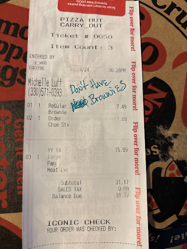 Ā Ā Ā Read moreI placed an order today August 31st @ 1:38pm. And the total was a $113. I clled after 4pm saying that I had not gotten my order....the manger.. (she said she was )did not have a driver but ordered a door dasher... we had already waited for almost 3 hrs ...with no notice....or contact from them directly. She said we will have to wait for another 20min for it to arrive. It did arrive at 436pm and when it finally showed up after I called and asked where my order was ... and then I was missing 5 pizzas and she wanted me to just take the loss and still pay for the 5 pizzas when I had ordered 7 pizzas but only received 2.....She said she was the manager and that she packed the order up herself and that everything was there....but I told her I do not have them and I'm not going to pay for them if I don't have them. She told me she doesn't know what to tell me that she would not give me a refund. She said she would drive to my house HERSELF to deliver the missing pizzas....but SHE DID NOT! Also When we finally got the food the food is cold and it tastes old not fresh and hot. She sounded like (when i clled...)she was just miserable and hated her job and she wasn't accommodating or polite. I will not be ordering from here...