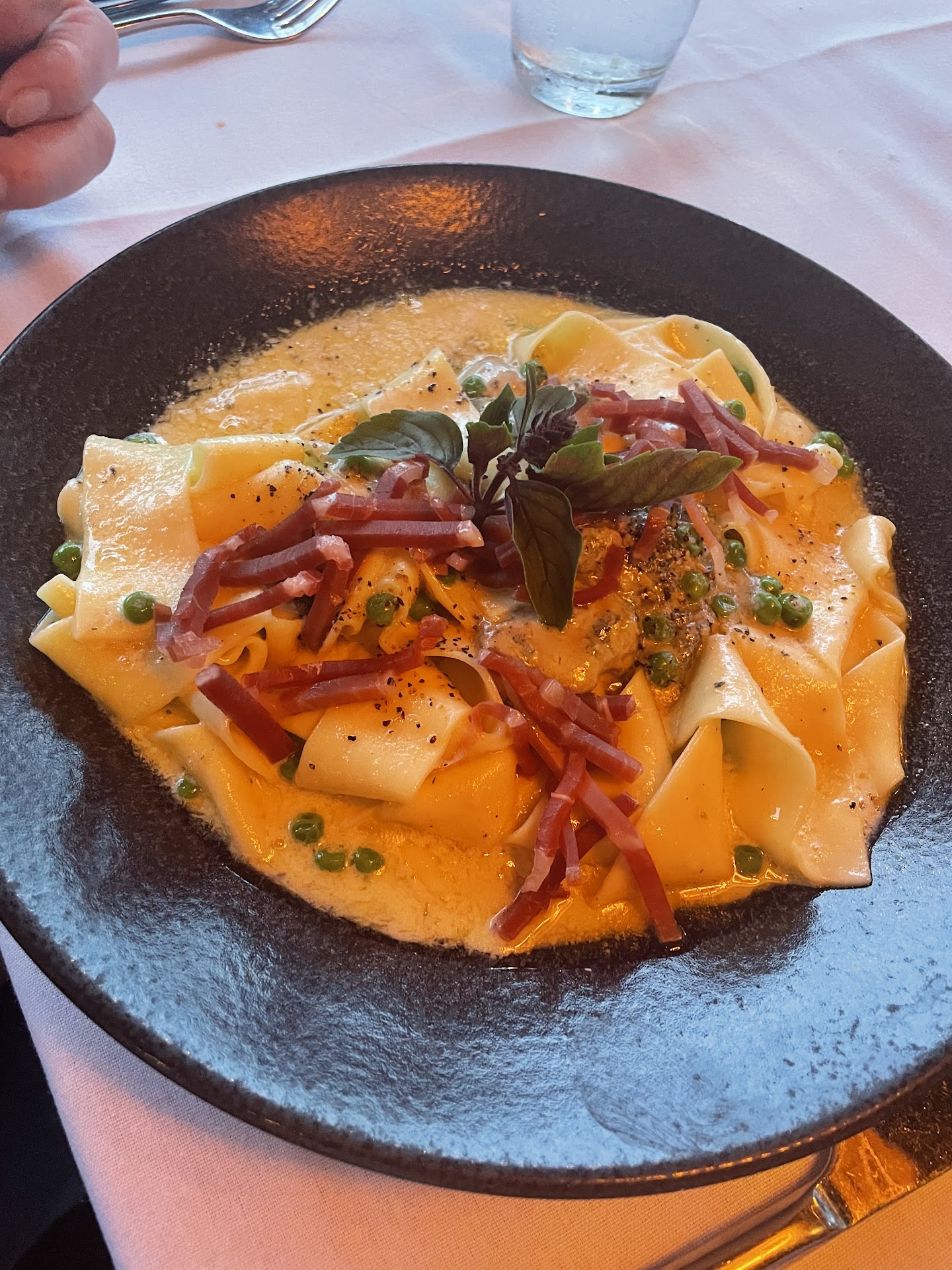Read moreI’ve heard great things and was looking forward to this meal, but my partner and I were overall pretty let down with our experience. The ambiance is pleasant and the wines were great, but the food left a lot to be desired. My pasta dish was drastically overcooked and underseasoned (salt and pepper shakers empty on the table as well) and my partners medium-rare steak was tough and served very rare, and it’s side dishes though fine were nothing to write home about. The vegan meatball app we ordered was also bland and underwhelming, however I must give credit where credit is due and say that the bruschetta we also ordered with it was absolutely delicious and the star of the entire meal. We took our dessert, tiramisu, to-go and that too was underwhelming and lacking in flavor. Also, while not that important because service was smooth and well-paced, I must say that we also found our server a bit difficult to interact with at times as he spoke very fast and very quietly making it difficult to hear him.