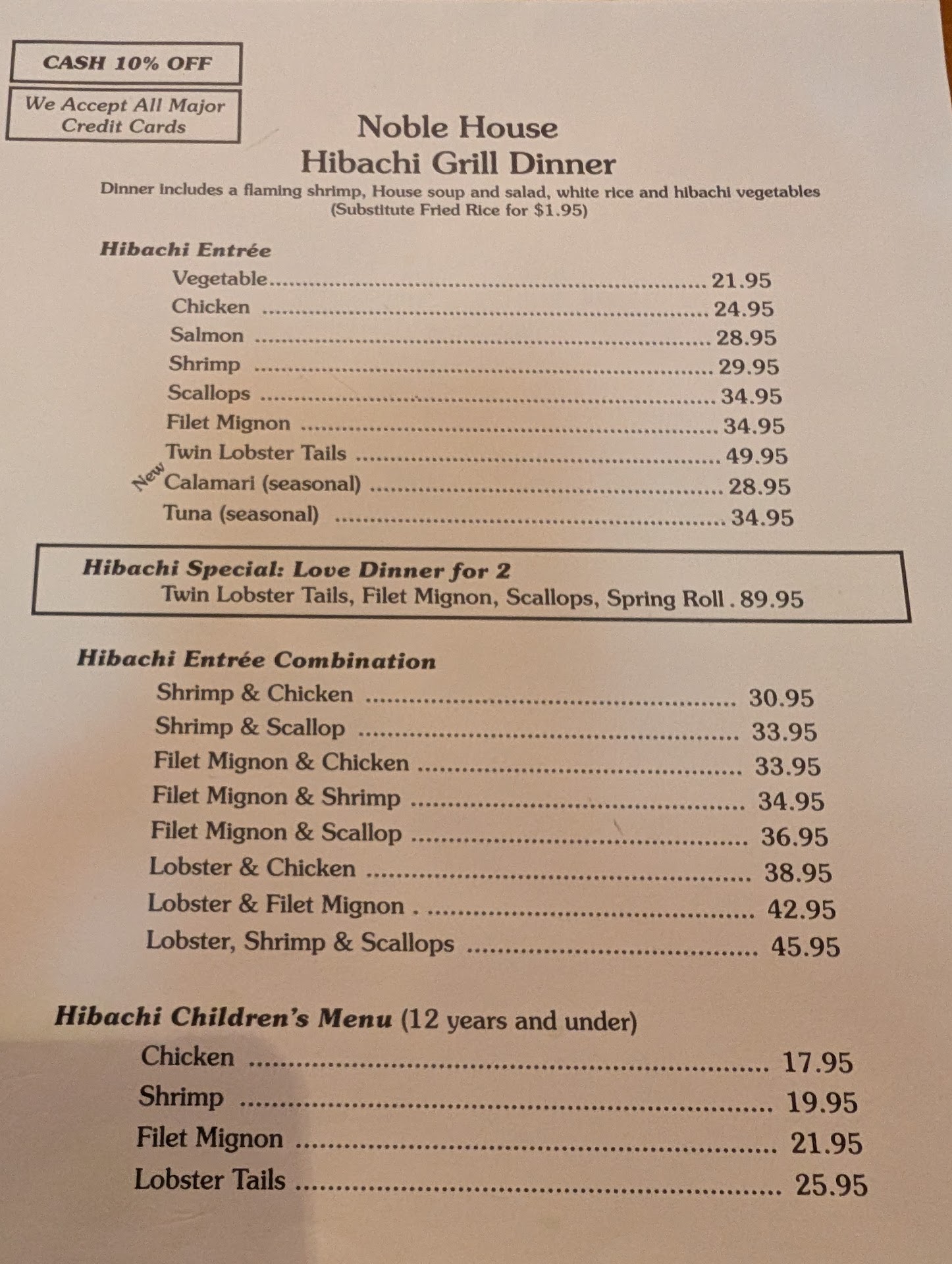 My family and I have been regulars at the Noble House for years and have always thought the food, service, and value were exceptional. Tonight's experience compelled me to write a review as the service far exceeded my expectations. I placed an order for takeout sushi, all of which was prepared beautifully and was, as always, very fresh. When I got home I realized I had forgotten to order two rolls for my daughter who also happened to be the birthday girl (mom fail). I called and explained my error and they very quickly put it together and even added a little extra. Everything was done so graciously and in no time, my daughter was enjoying her favorite avocado rolls of all time (her words). I highly recommend the Noble House whether you're dining in for sushi or a fun evening of hibachi or taking out. We will continue to be...