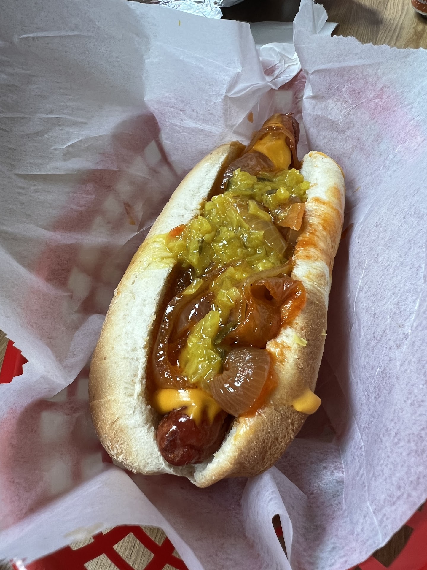 The hot dogs were perfect, onions home cooked, nice thin dog and not too much bun though one review said it was too much (I don’t know maybe just take some bun off then if that’s your preference) for us, the ratio was perfect. My wife has been looking for this kind of hot dog for a long time. She used to get these types of hot dogs when she was a kid with her father and could never quite find the right one. This brought her right back to her childhood and special moments with her father. He would’ve loved this place and we would be taking him here if he were still with us