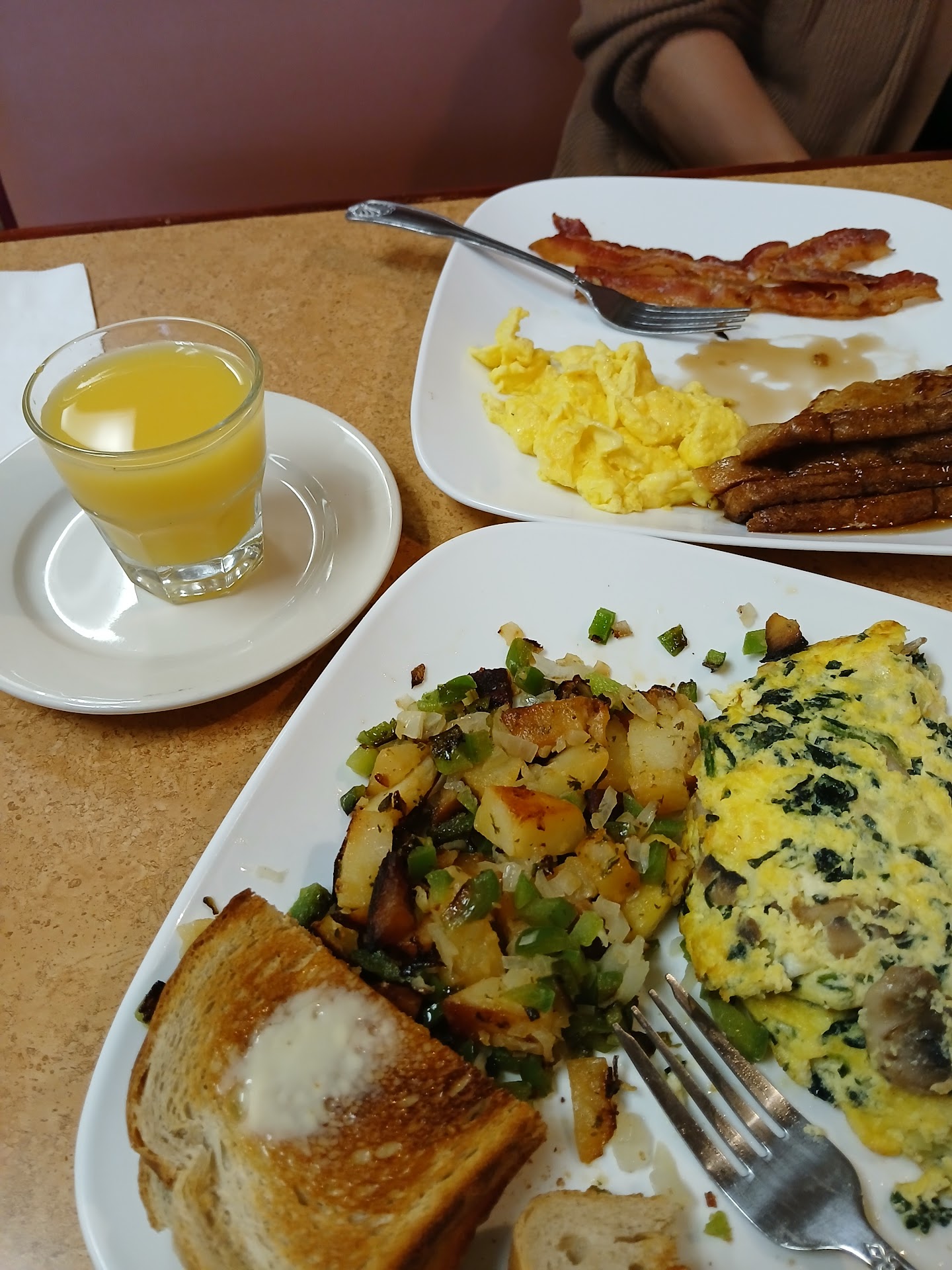 I have been here two times before over 6 months ago, it used to be a very pleasant place to eat. couple of weeks ago after talking up the place to my daughter we went and had breakfast. The owner was not as welcoming as he used to be. The home fries were undercooked the corn beef hash was scant and my scrambled eggs looked like there was either just one egg or two very small eggs and my rye toast which was not burnt was hard. My daughter was also not happy with her food which she did not finish. I am embarrassed to have taken her there and spoke so highly of the place before hand. On top all all that the price went up A LOT $29.00 before tip for the two meals, which did include coffee and juice, I wouldn't have mind the price considering what the industry has been dealing with but this was just unacceptable.