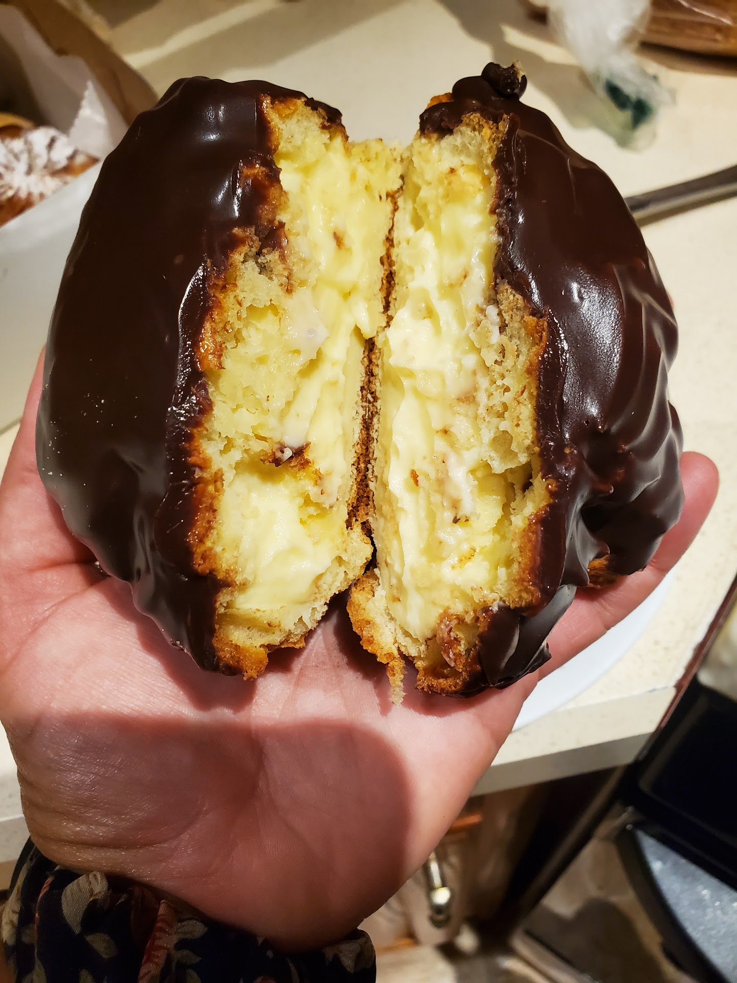 Read moreSo, I have been following this bakery since they opened on Facebook and Instagram and those desserts just kept "calling" me... so, I stopped there yesterday and immediately was greeted by a very bubbly, sweet woman behind the counter which offered me some samples. Then I just looked around and asked what this big, poofy thing was and it was the cream puff!!! I got two of those... lol! I also got some nut cookies and chocolate bomb... so excited to see what all the talk of this place was... I tried a piece of each one.. well... WOW!!! The cream puffs... DELICIOUS!! Can you say CUSTARD!?!? It was a soft delicious dough and STUFFED with amazing custard!! Like... STUFFED! The nut cookie was SOOOOO good.. this nice crisp cookie shell and filled with homemade caramel!!! Those are dangerous to have around.. lol! Then I had the chocolate bomb... not such a big dessert, but definitely ooey and gooey deliciousness!!! It's nice a crisp shell and filled with a chocolate pudding/fudge kind of stuff... soo good!! All in all, I am definitely satisfied with what I had and will definitely be back to try more things...