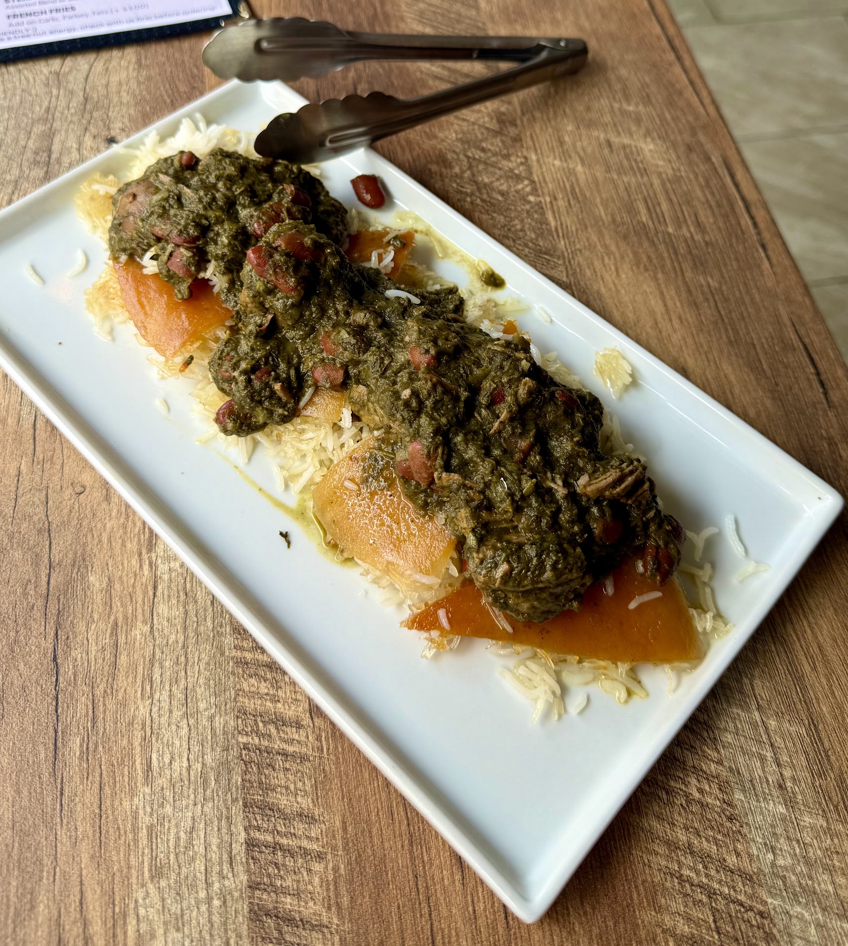 The tahdig with ghormeh sabzi was a standout—a golden, crispy rice crust layered with the rich, herb-packed Persian stew of slow-cooked beef, kidney beans, parsley, cilantro, fenugreek, and dried lime. The contrast of textures—the crunch of tahdig against the tender meat and greens—was pure comfort food.