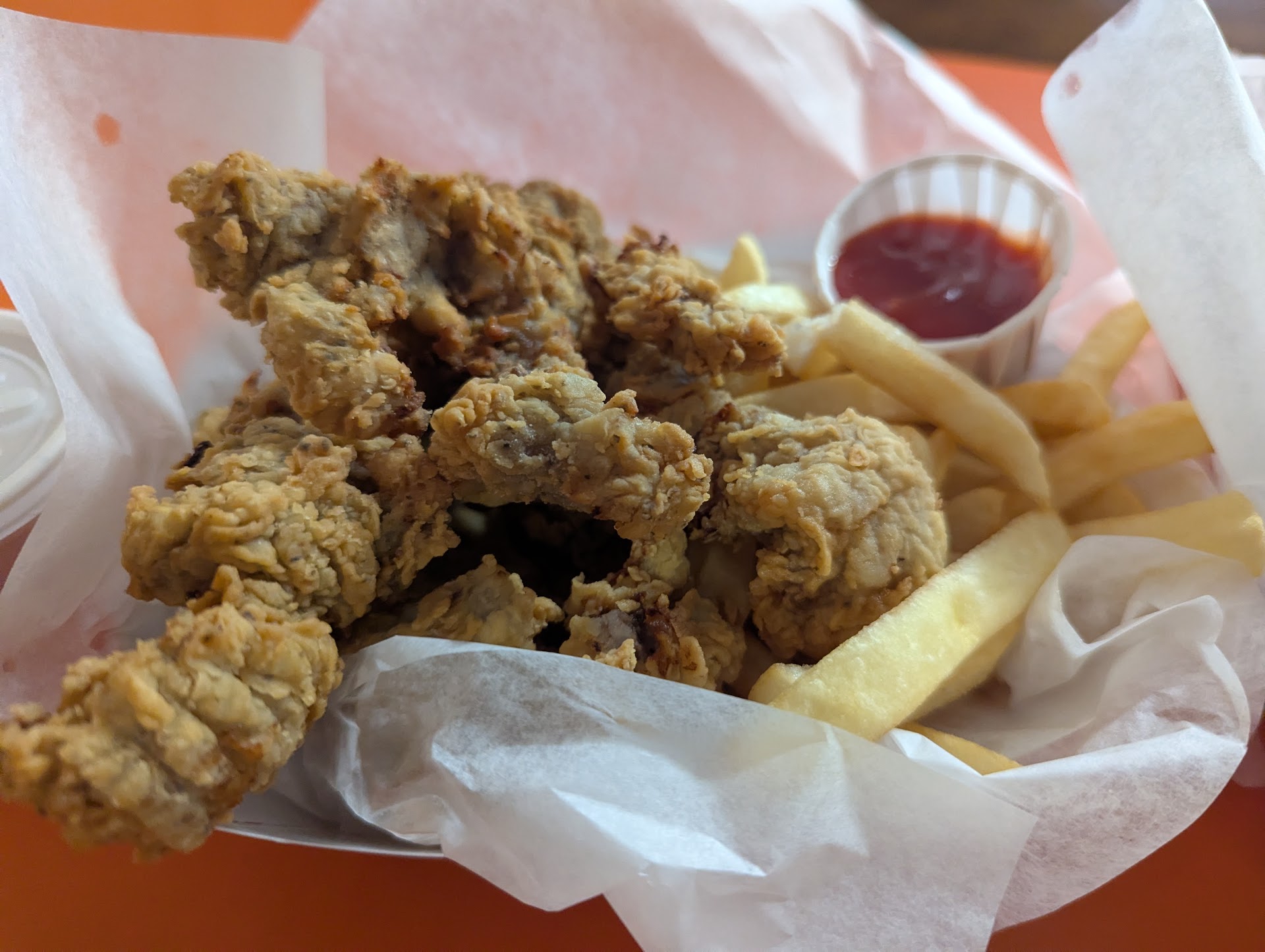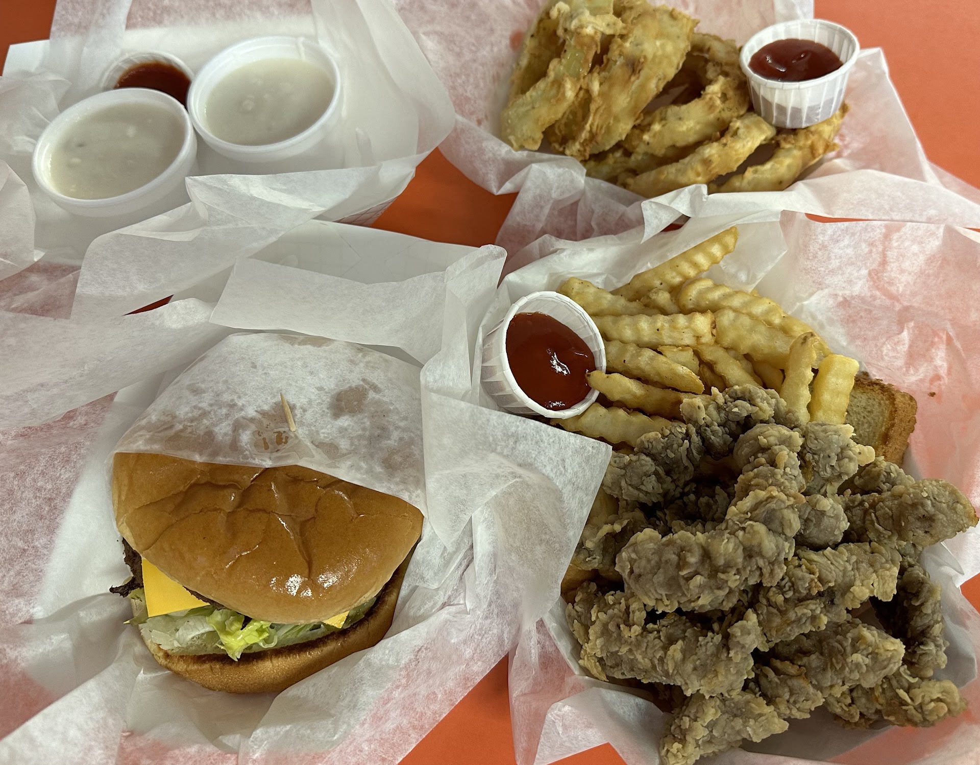 Conveniently located on 380 between Roswell and Dallas, this place has good hamburgers, fries, onion rings and steak fingers. I added lots of pepper to the gravy for the steak fingers