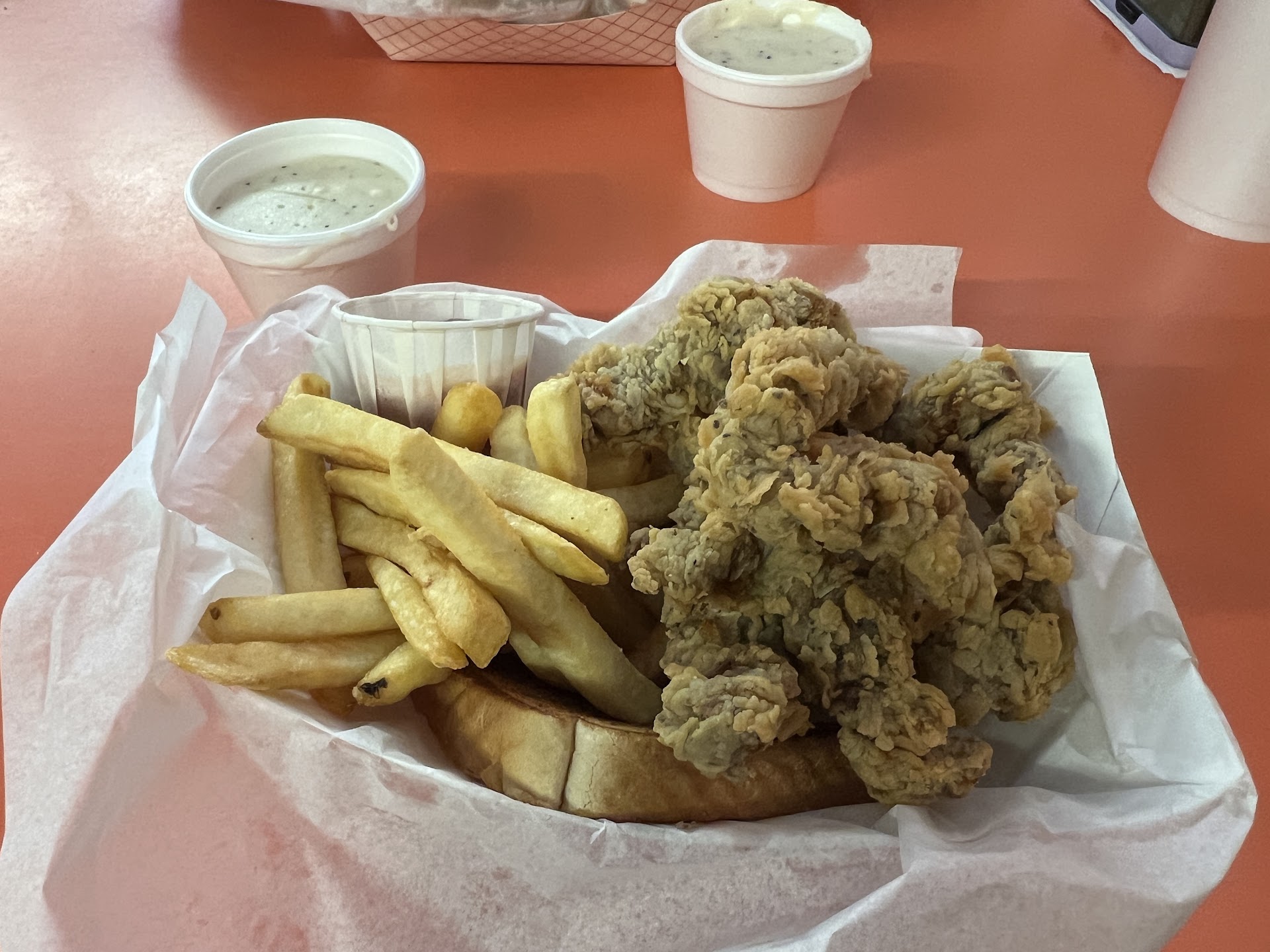 Read moreWhat a unique local diner typical for most small towns. It might remind you of a Seinfeld episode if you know about the soup. But if you don't know what you want, there's too much to know. Steak fingers are what they're known for and are good but not when you think about chicken fingers which sometimes is a softer meat with no gristle or fat. I did love the gravy. Also had onion rings and they're pretty solid.. batter could be just a...