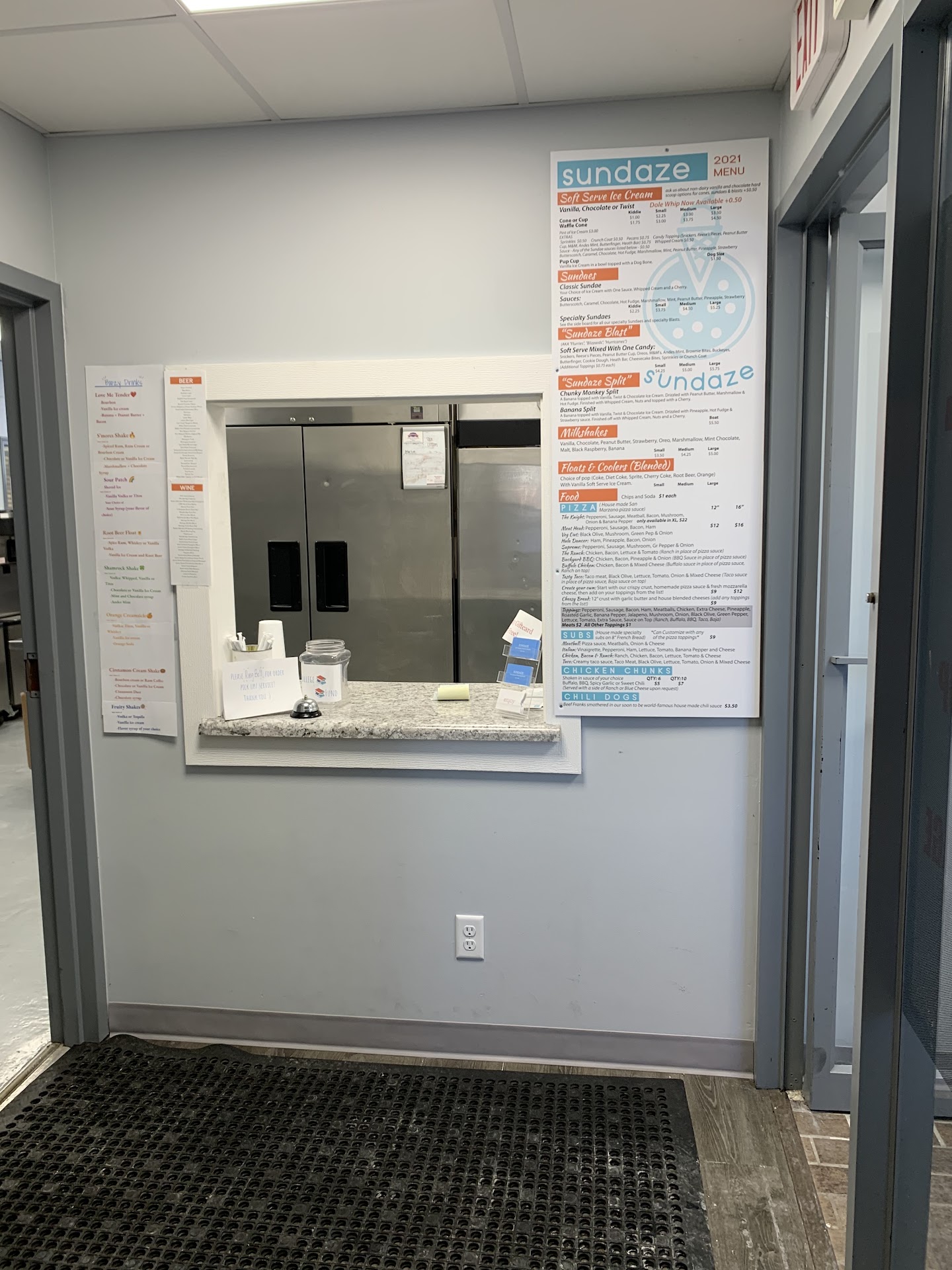 Not impressed but not surprised. We won't be back. Not sure how they stay open. When they first opened, we tried to call and order a pizza which we really wanted to try. No one ever answered the phone after calling twice so we have never tried to order from them again until tonight. My husband wanted to try one of the hotdogs and we were getting ice-cream. They close at 10pm and it was about 9:20 when we stopped. First, we were were told the ovens were turned off so no food. I didn't notice anything on their website or signs about not serving food after a specific time. I think the girls working wanted to make sure they got to leave at close and not start their closing process at 10pm. My husband ordered a reeces pieces sundae. Get home and realize his "sundae" is only vanilla ice-cream and reeces pieces. No chocolate or peanutbutter sauce. Just bad experience all...